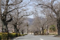 この参道は、片側は桜の木が植えられ、もう片方には松の木が植えられています。