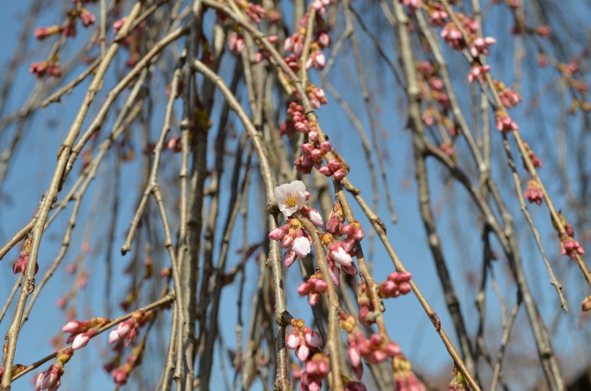 きのう開花したソメイヨシノは、今日も少しずつ咲いて2分咲きです。