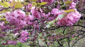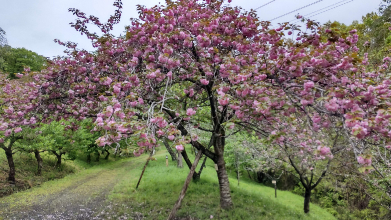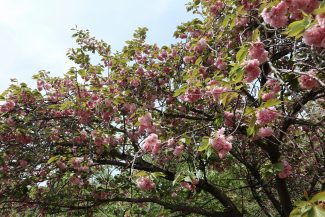 通り抜けの桜(八重桜)は見頃が終了しました。