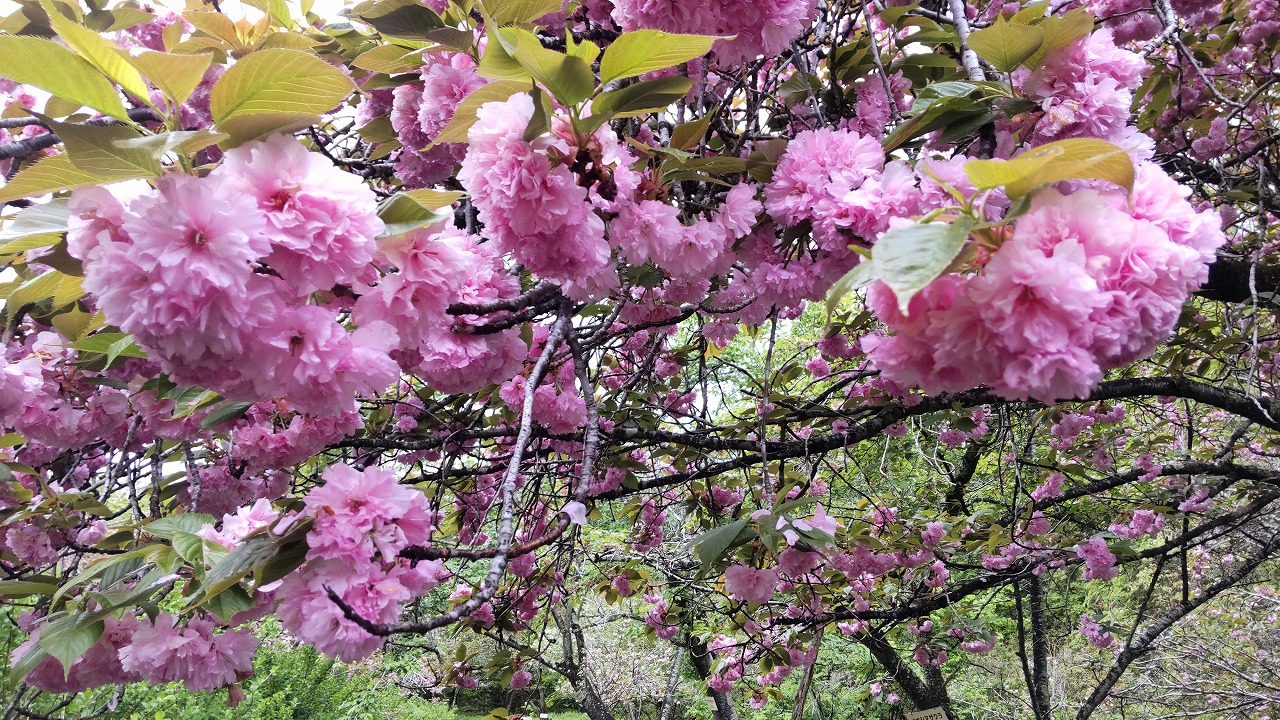 現在は通り抜けの桜(八重桜)の「関山」が引継ぎ見頃を迎えております。