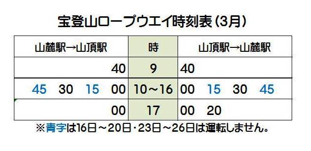 宝登山ロープウエイ)3月1日は無料シャトルバスの運行はありません。