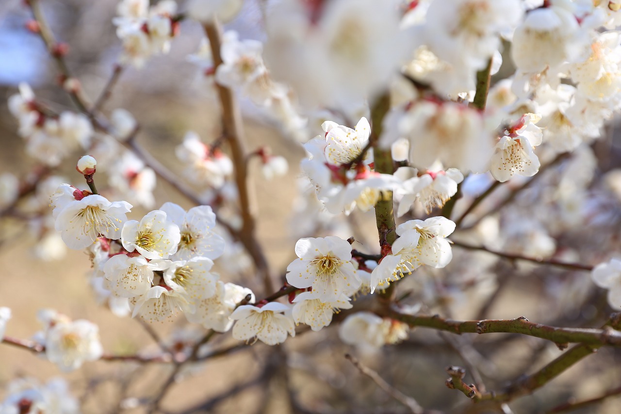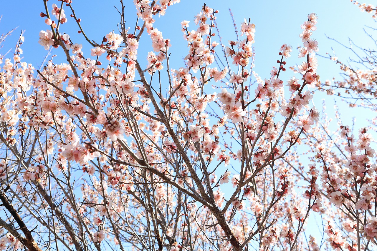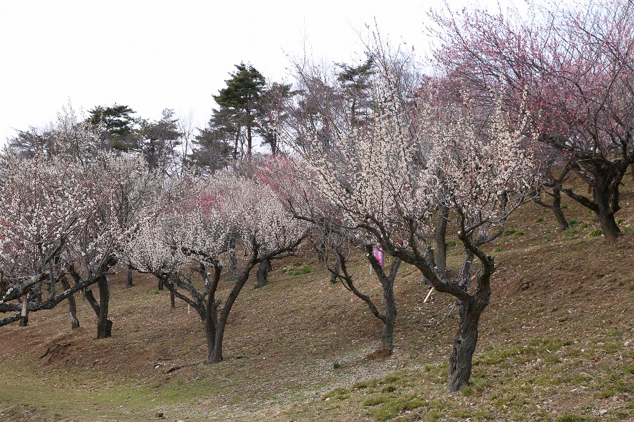 梅百花園・・・3〜4分咲き。一部開花が進んでいる木もあります。