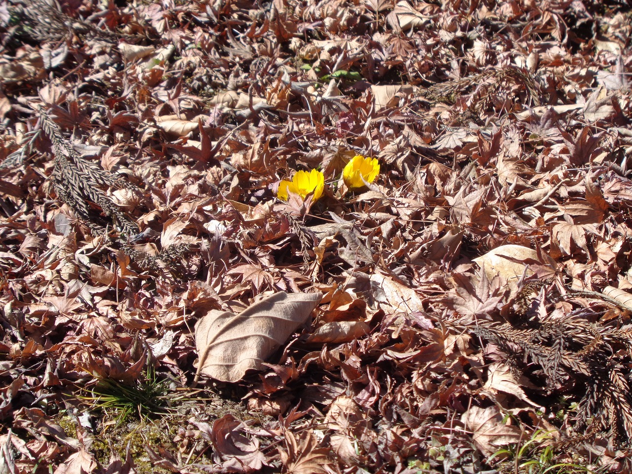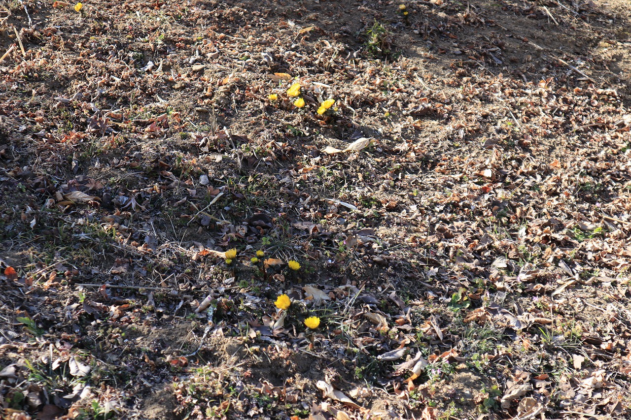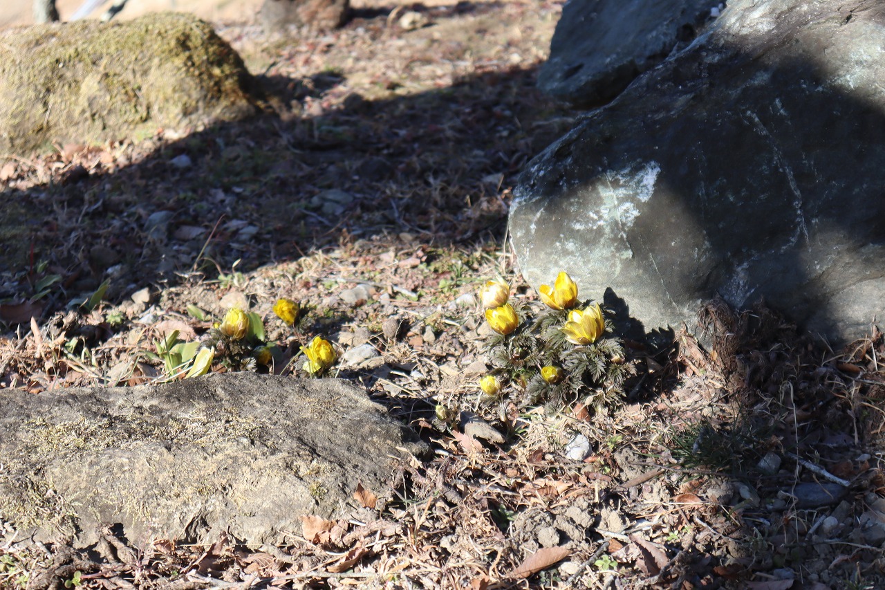 福寿草・・・開花。どこで咲いているか、探してみてください!!