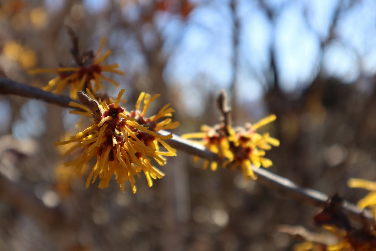 マンサク・・・見頃です。「まず咲く」の音が訛って「マンサク」になったとも言われています。