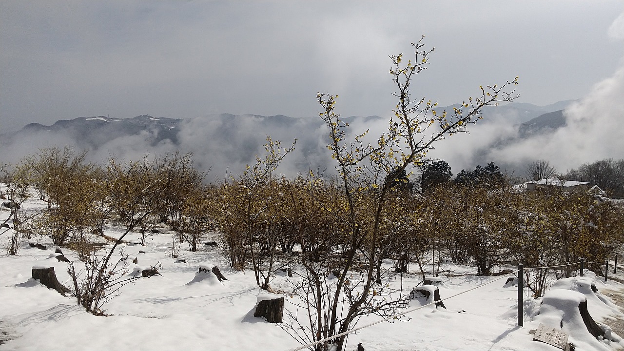2022年3月18日 宝登山 梅・福寿草・ロウバイ開花状況 2022.3.18 長瀞観光情報 梅情報 花情報 ロウバイ情報 宝登山の梅・福寿草・ロウバイおよび不動寺のしだれ梅の開花情報をお伝えいたします。 宝登山頂の「梅百花園」・宝登山麓の「不動寺しだれ梅園」は、今見頃を迎えています。 本日、悪天候のためガスが出ておりましたが、梅の花はきれいに咲いています。 梅百花園・・・見頃 不動寺しだれ梅・・・見頃 西ろうばい園・・・見頃すぎ 東ろうばい園・・・見頃すぎ 四季の丘ろうばい園・・・見頃すぎ 福寿草・・・見頃すぎ
