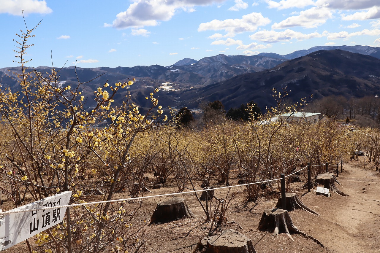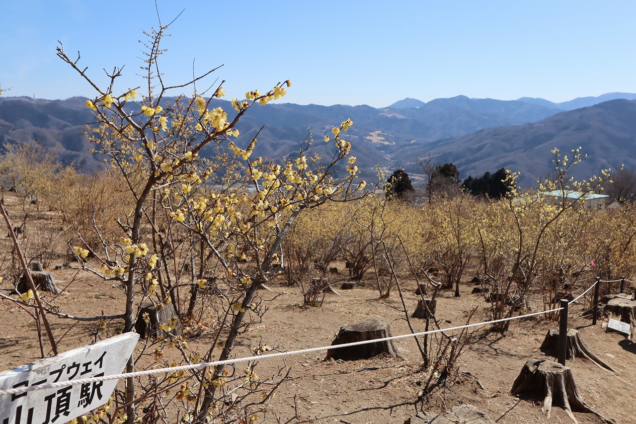2022年2月21日 宝登山 ロウバイ開花状況2022.2.21 長瀞観光情報 梅情報 花情報 ロウバイ情報 宝登山のロウバイ・梅・福寿草および不動寺のしだれ梅の開花情報をお伝えいたします。 西ろうばい園・・・見頃すぎ 東ろうばい園・・・見頃 四季の丘・・・見頃 梅百花園・・・4~5分咲き 福寿草・・・開花 不動寺しだれ梅・・・咲き始め
