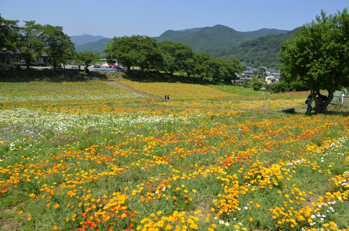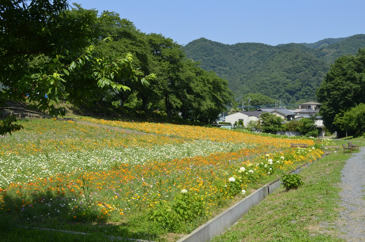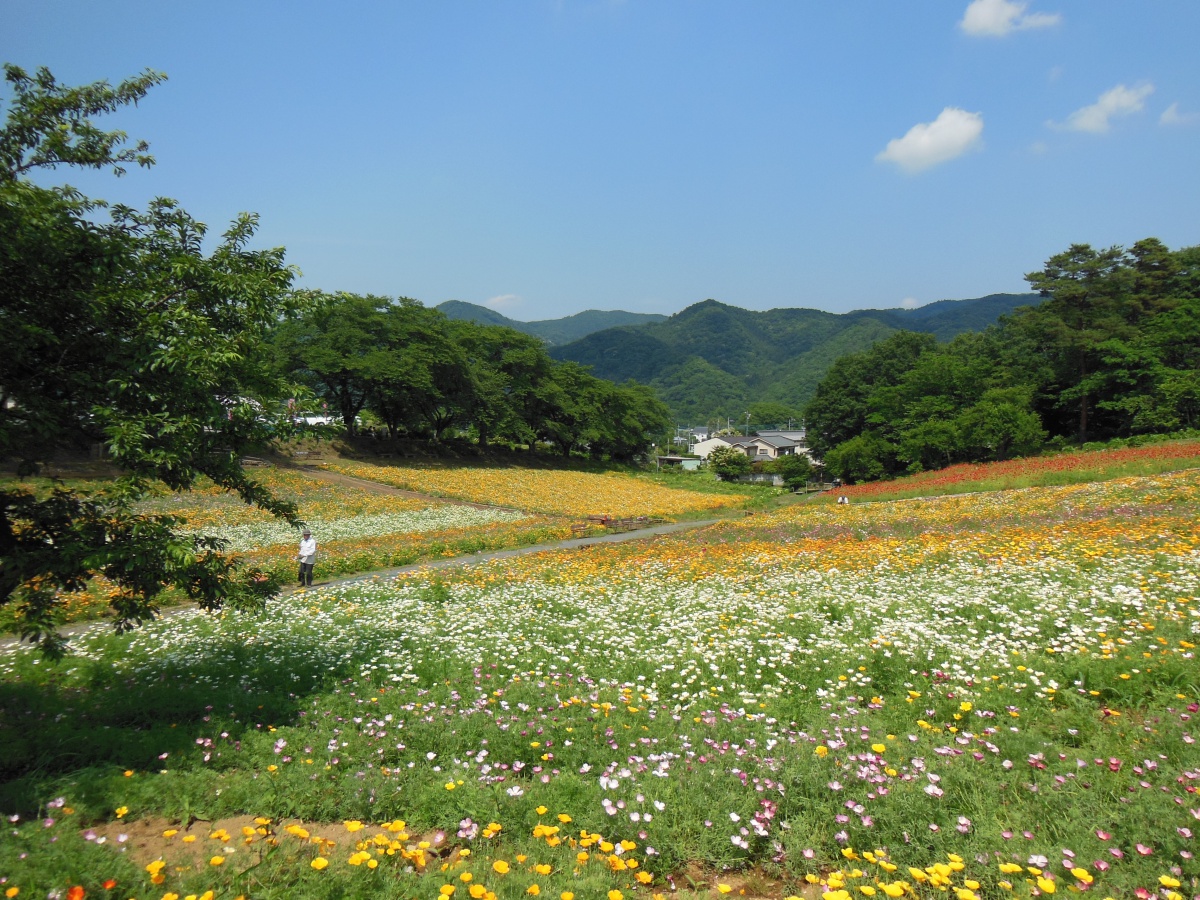長瀞「花の里」にて、コスモスが咲き始めました。また、百日草も見ごろとなっております。
