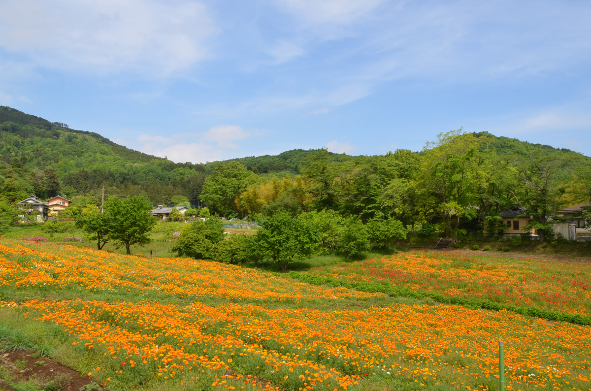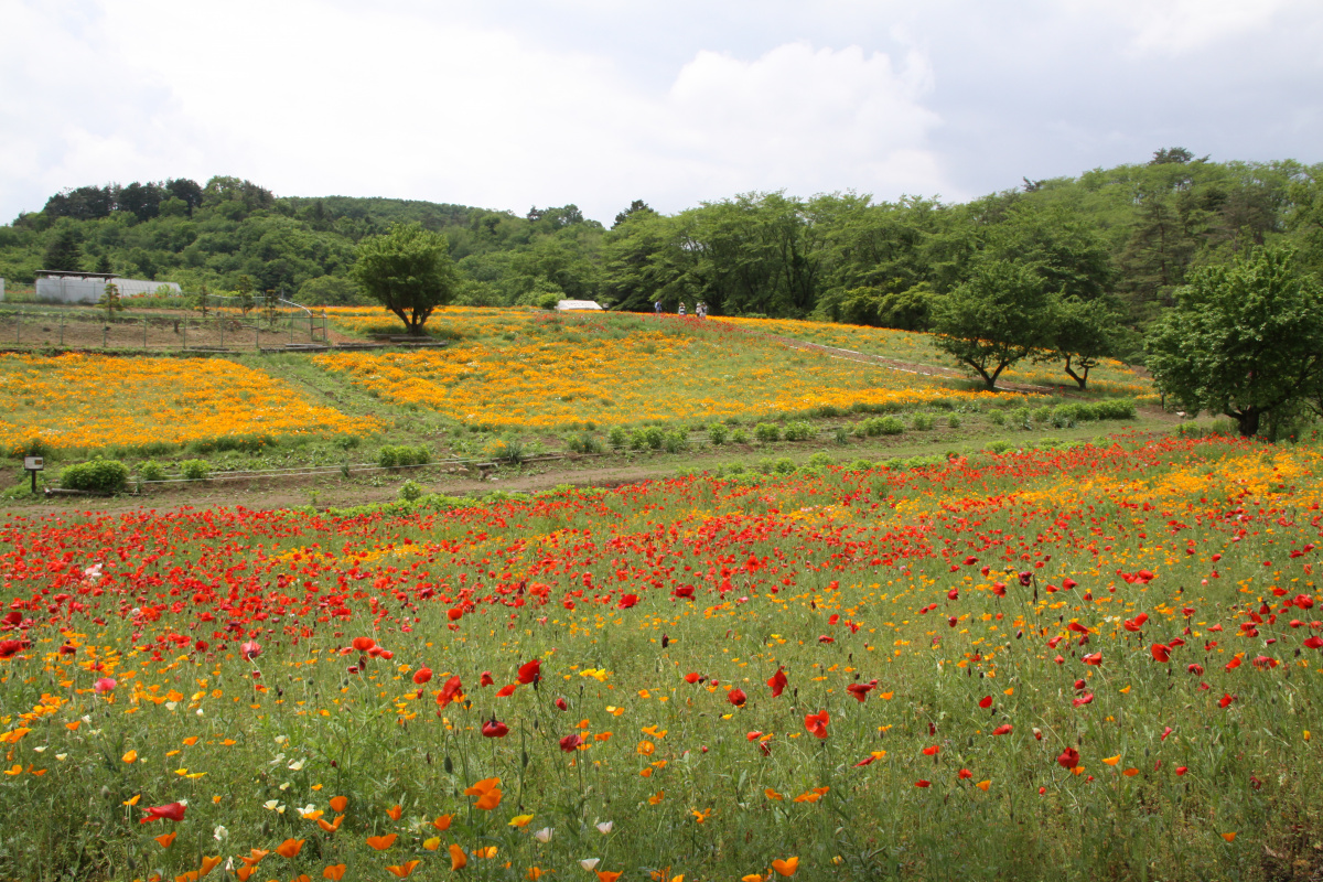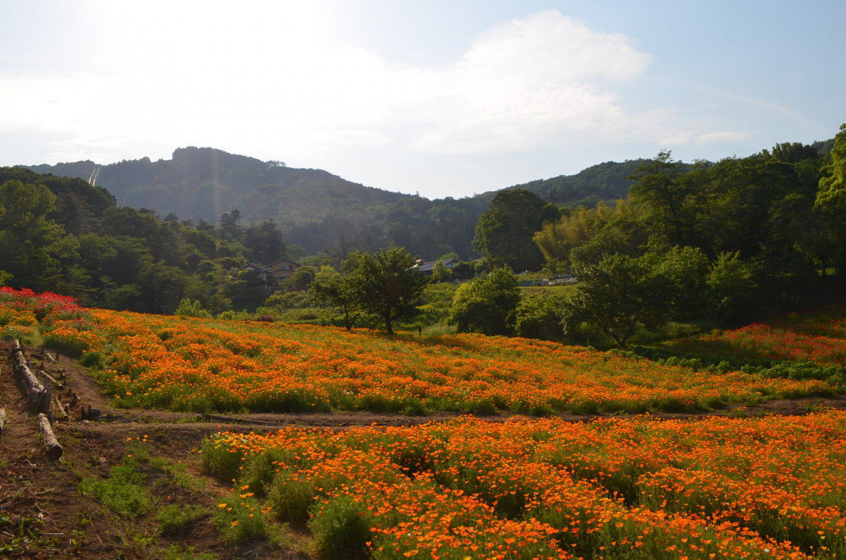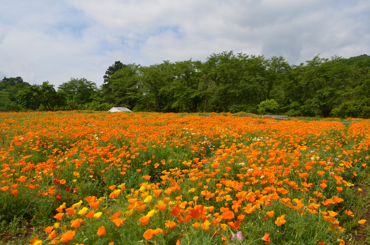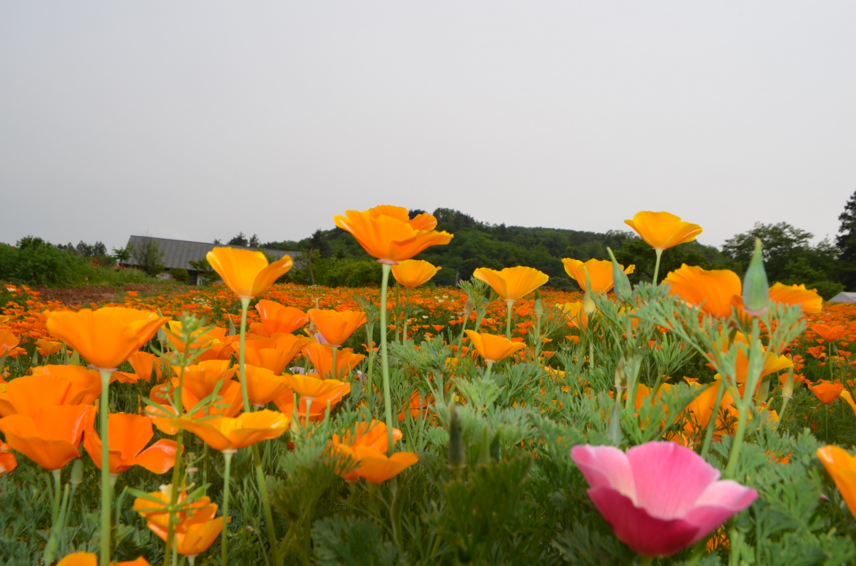 ・ 花の里「ハナビシソウ園」ではハナビシソウやポピーが見ごろです。