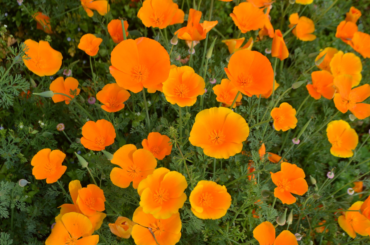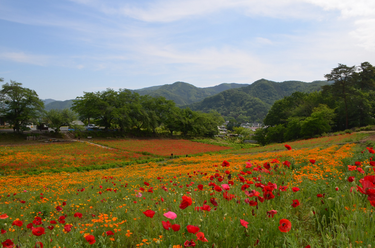 ・ 花の里ハナビシソウ園ではハナビシソウやポピーが見ごろになりました。