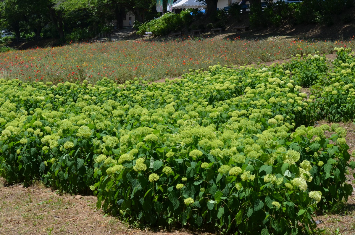 2016年6月6日 ハナビシソウ、アジサイ開花状況 6月6日 長瀞観光情報 花情報 ハナビシソウ 花の里「ハナビシソウ園」の見ごろは過ぎました。たくさんの方にお越しいただきありがとうございました。 同じ花の里の園内ではもうすぐアナベル(アジサイ)が開花しそうです。また、隣の野土山でもアジサイが咲き始めました。