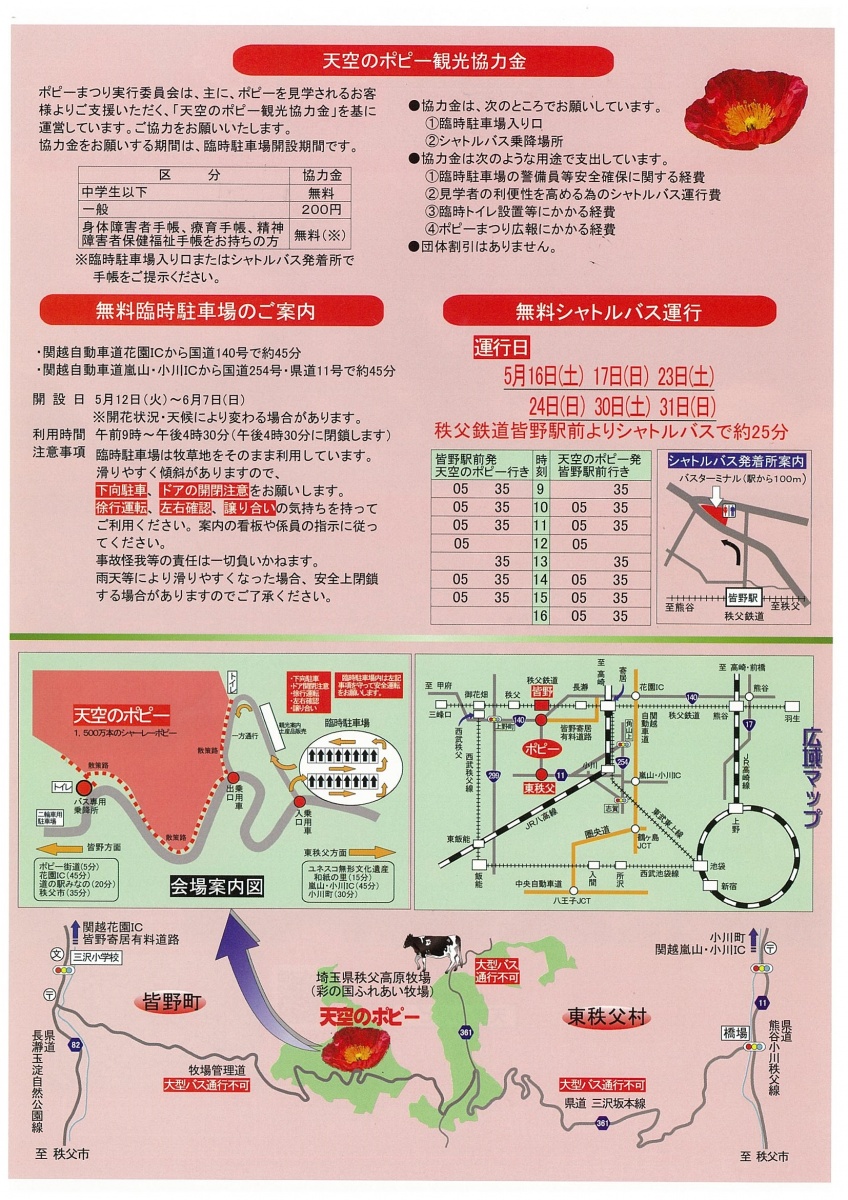 見頃期間中、皆野駅から、無料シャトルバスも運行されます。