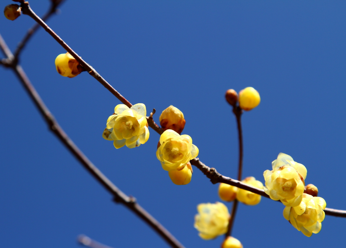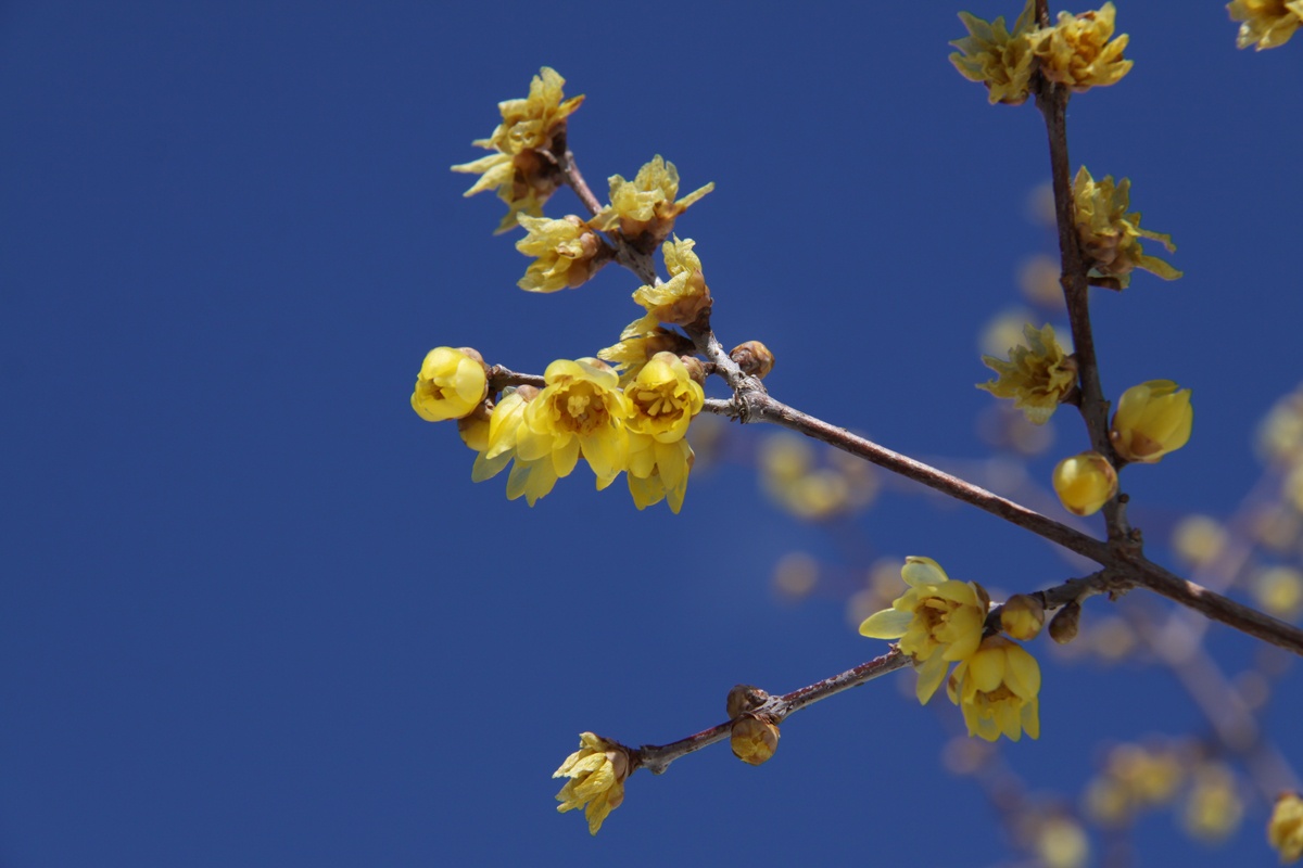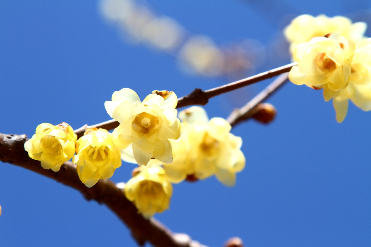 黄色のロウバイは花開くと、甘い香りを放ち、長瀞に一足早い春を知らせてくれます。