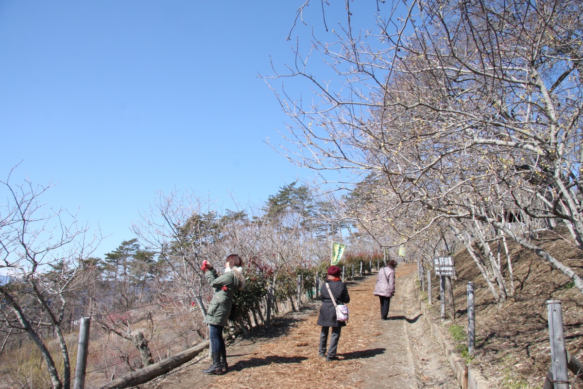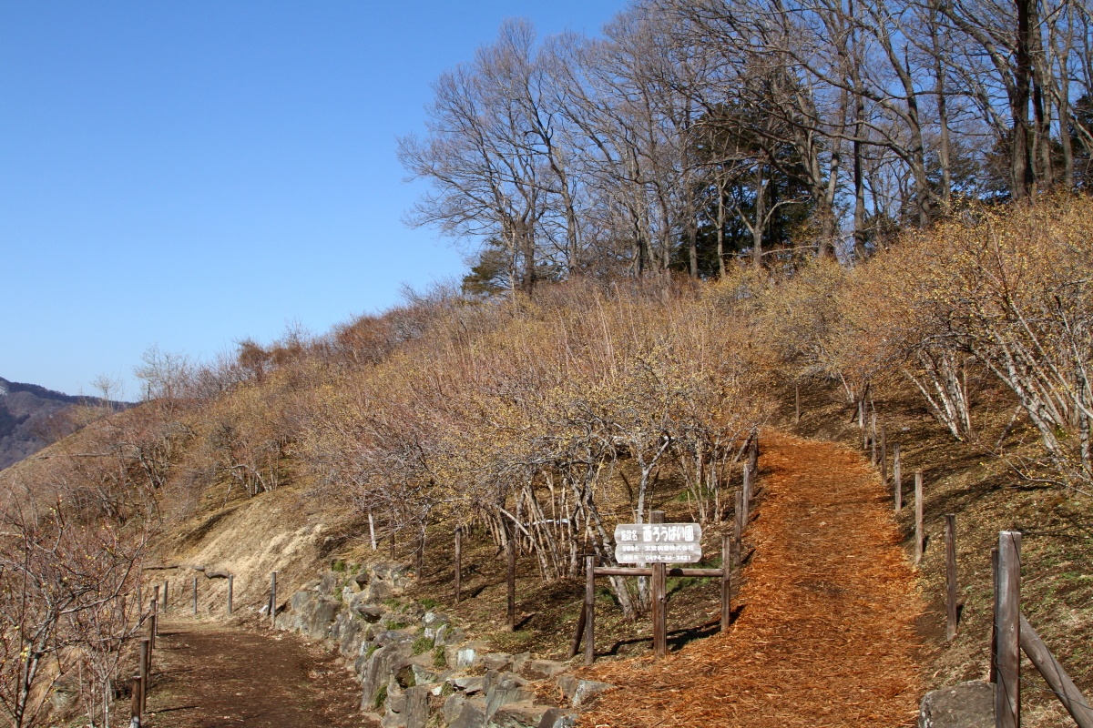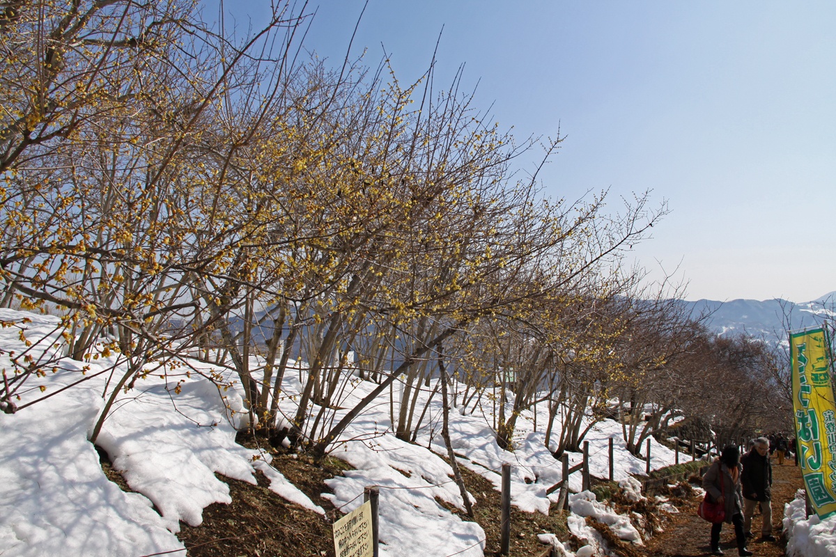 西ロウバイ園(ロープウェイ山頂駅より奥の山頂付近)は、見頃
