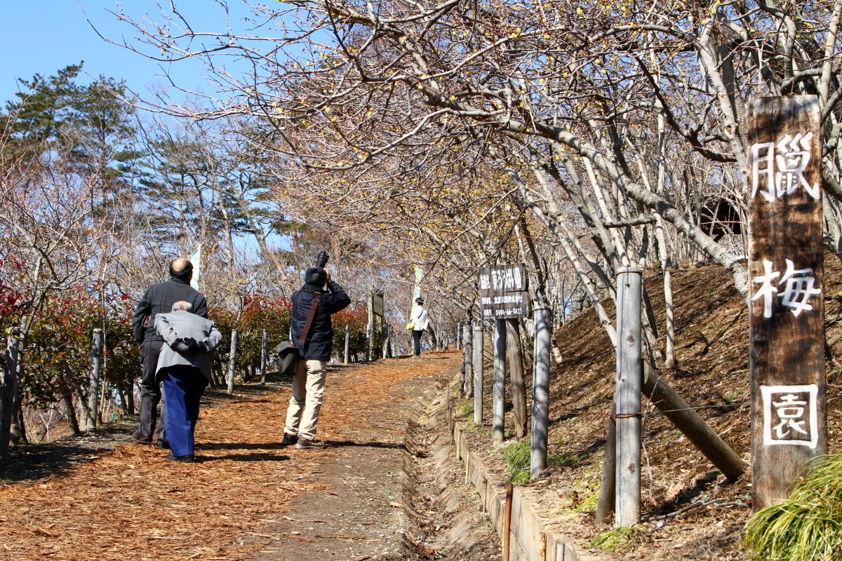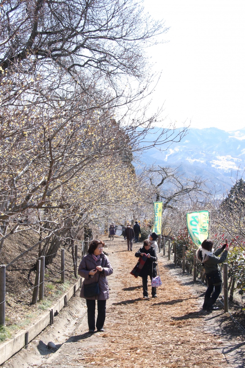 2月の土・休日、宝登山ロープウェイ山頂駅前で、長瀞町認定ボランティアガイド「えんでんべぇ」による