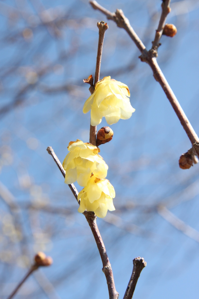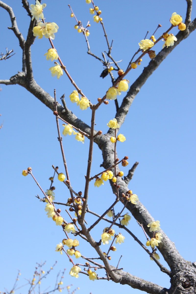 このロウバイ園では、和・素心・満月の3種類のロウバイを見ることができます。