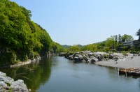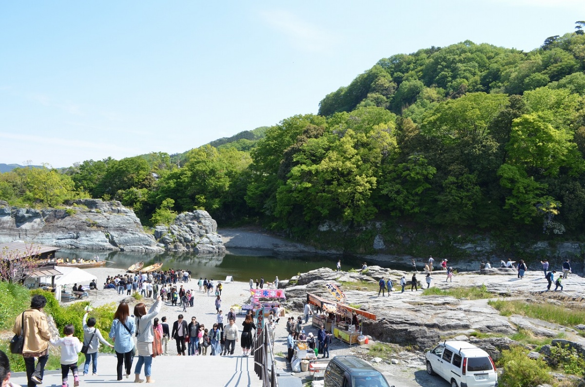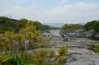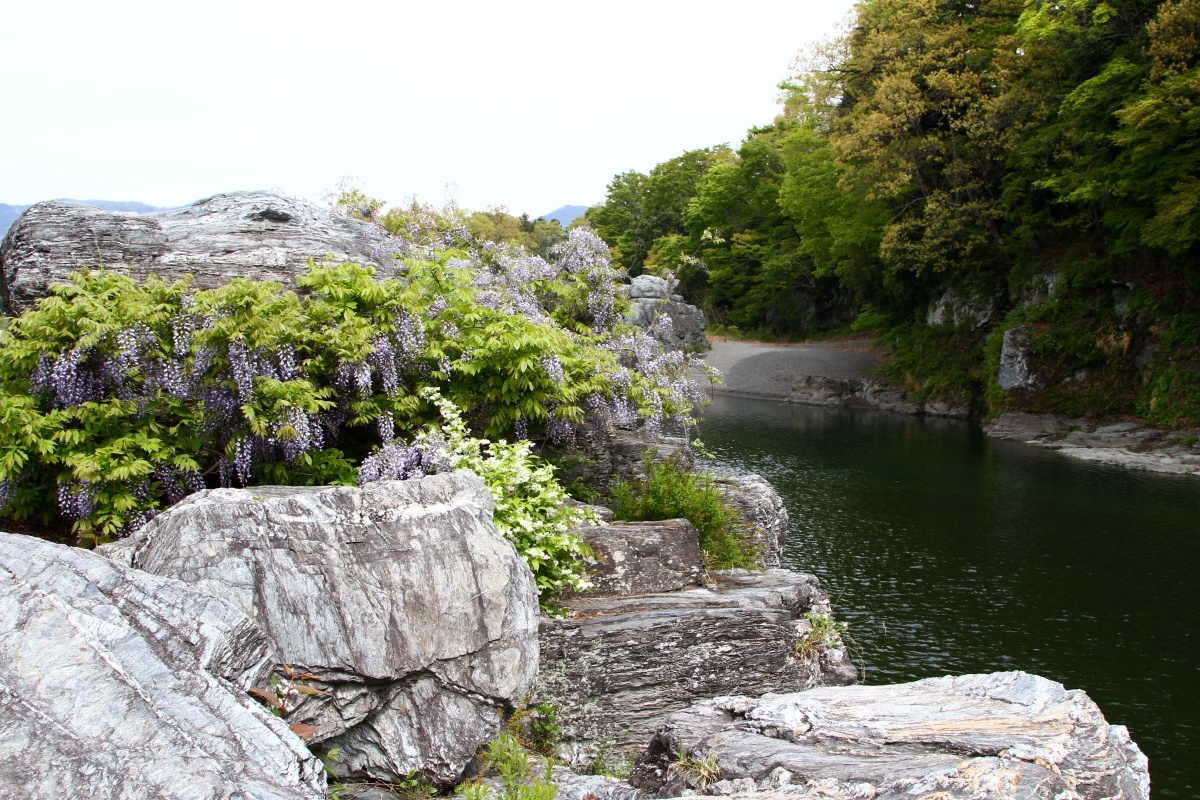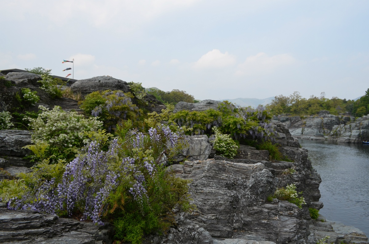 今なら、川下りしながら藤や新緑を眺めることができます。