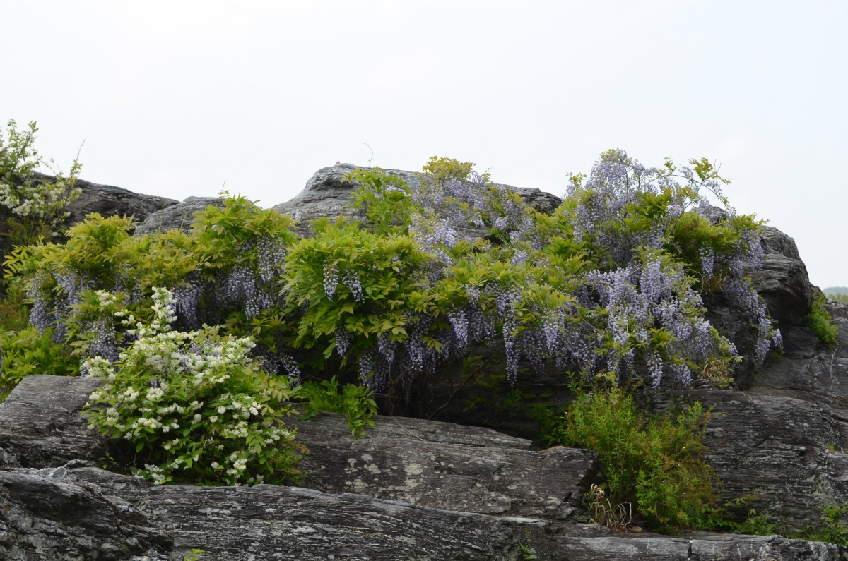 岩の隙間から鮮やかな紫色の花を咲かせます。