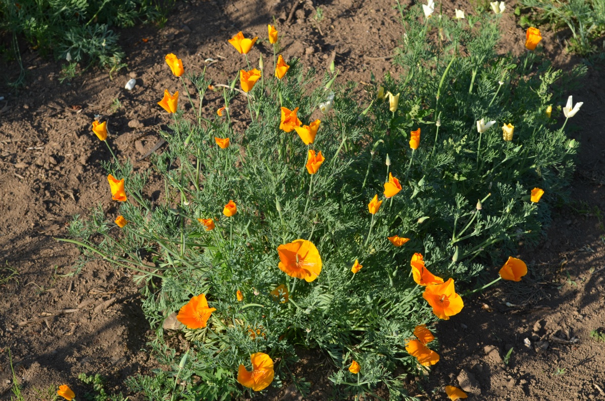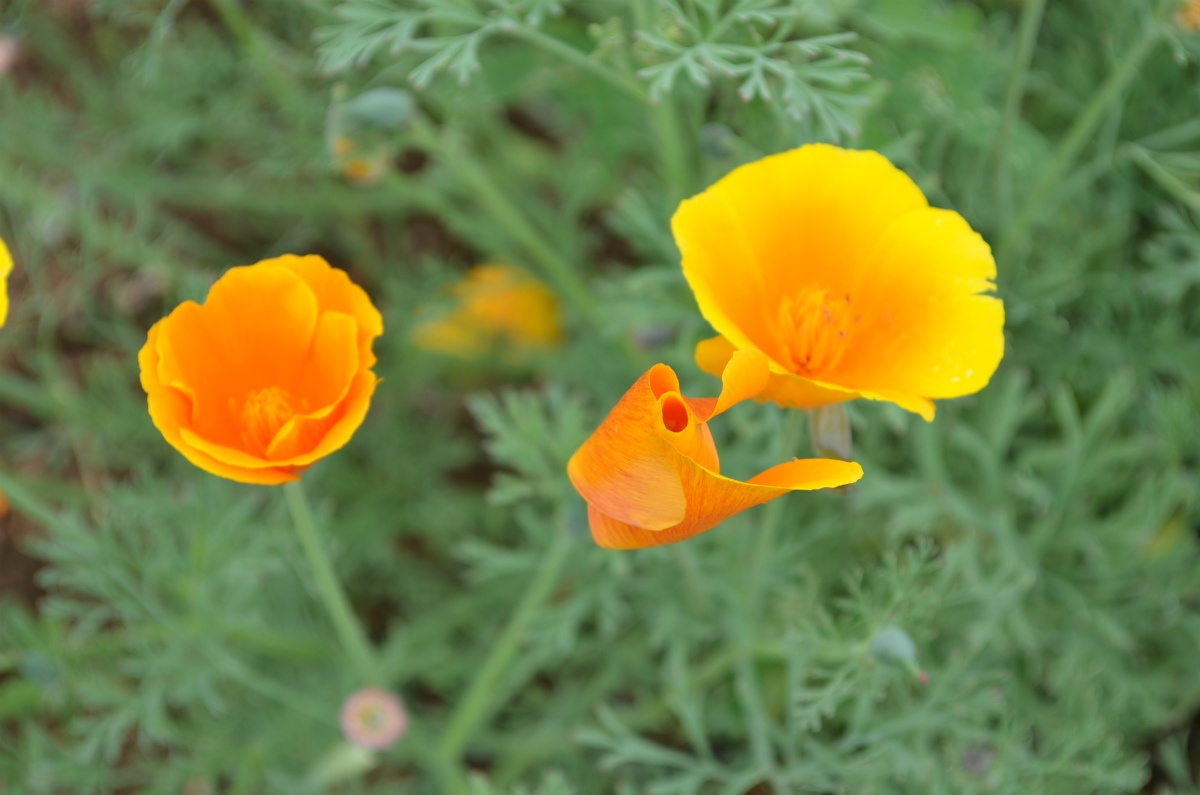 鳥のさえずりとともに、ハナビシソウをお楽しみください!