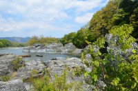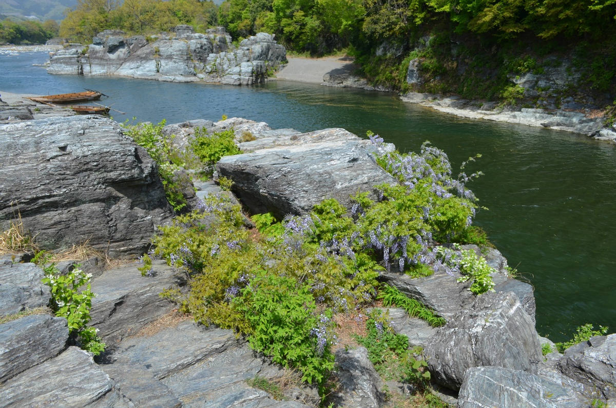 今なら、川下りしながら藤や新緑を眺めることができます。
