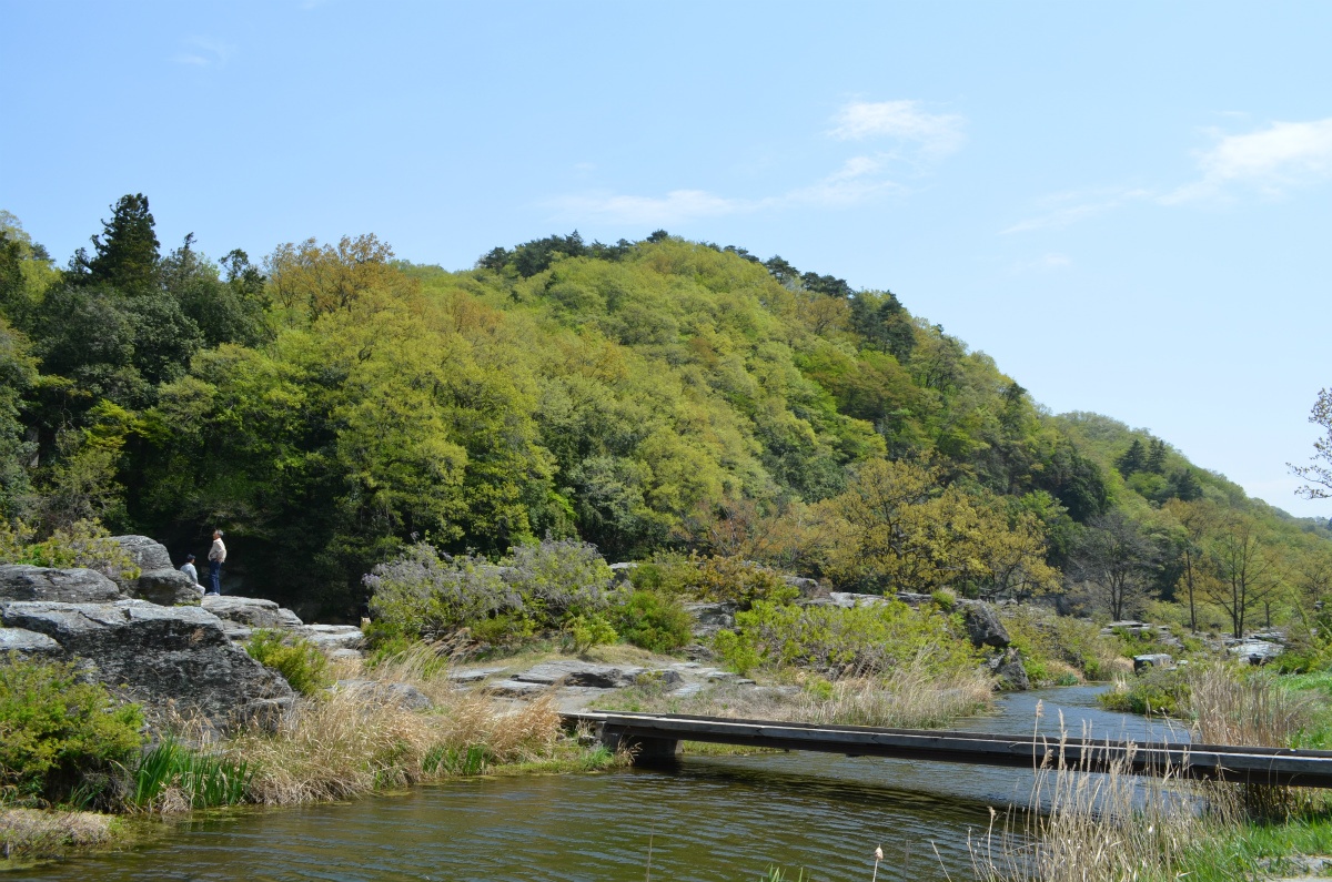 今日はカラリと晴れて、過ごしやすい一日です。山も少しずつ萌えて若緑色が目立ってきました。