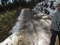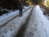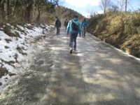 宝登山中腹(東屋)~宝登山小動物公園・・・雪が残っておりアイスバーンになっています。