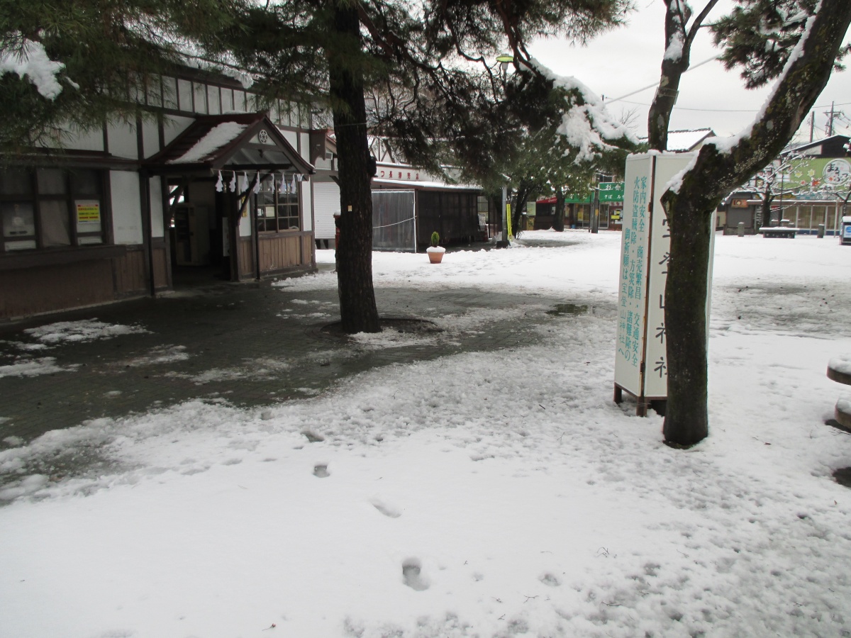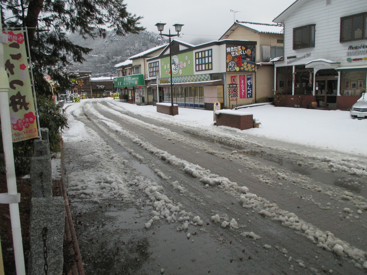 現時点では長瀞駅前は5cm位の積雪があります。