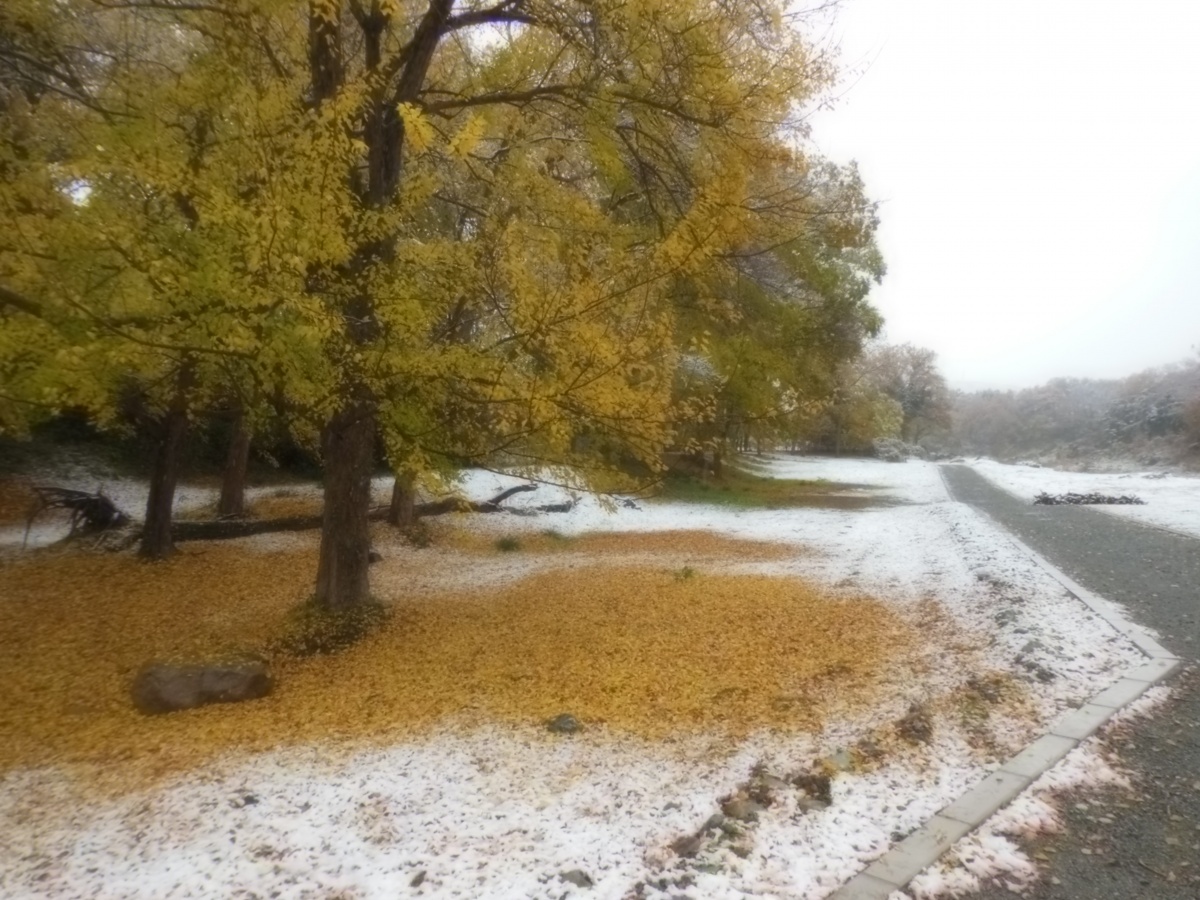 雪が降り、だいぶ葉が落ちてしまったところもありますが、