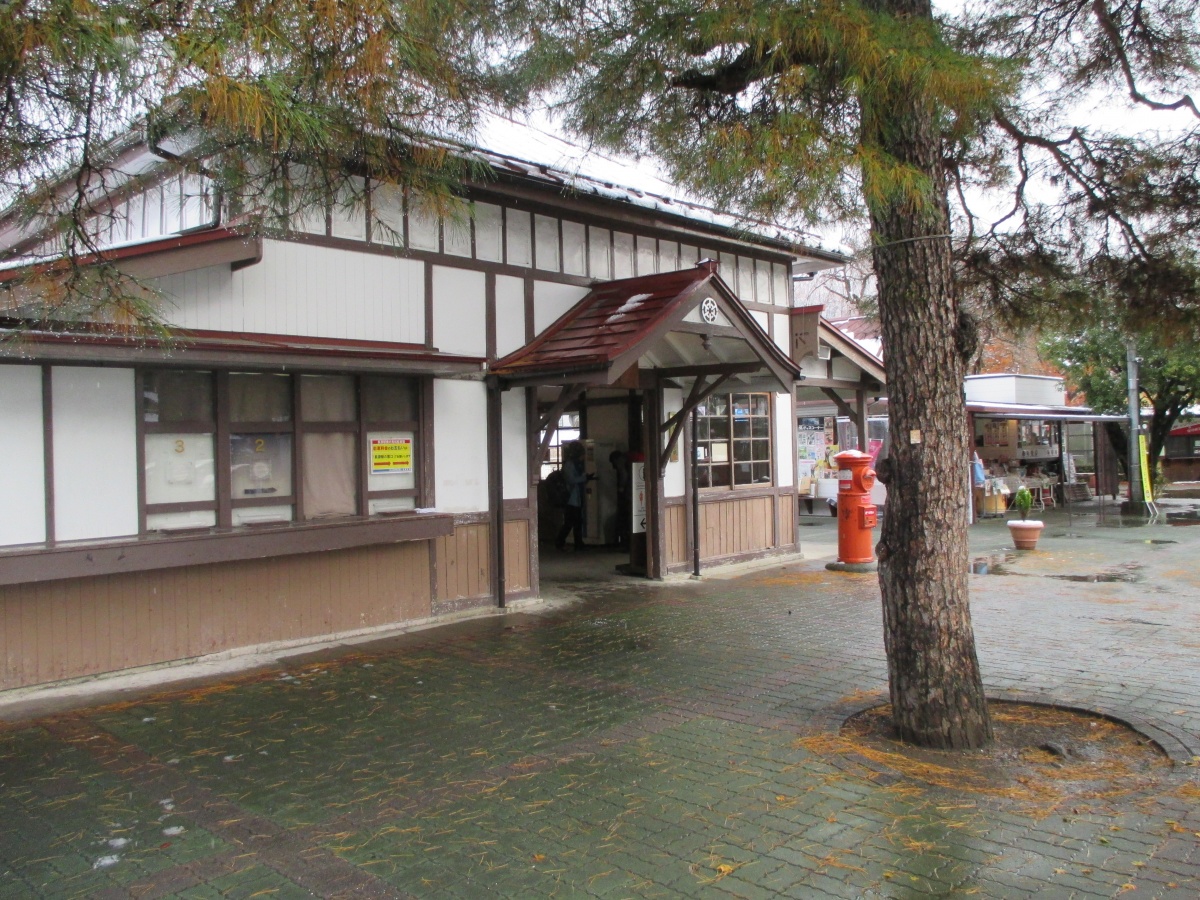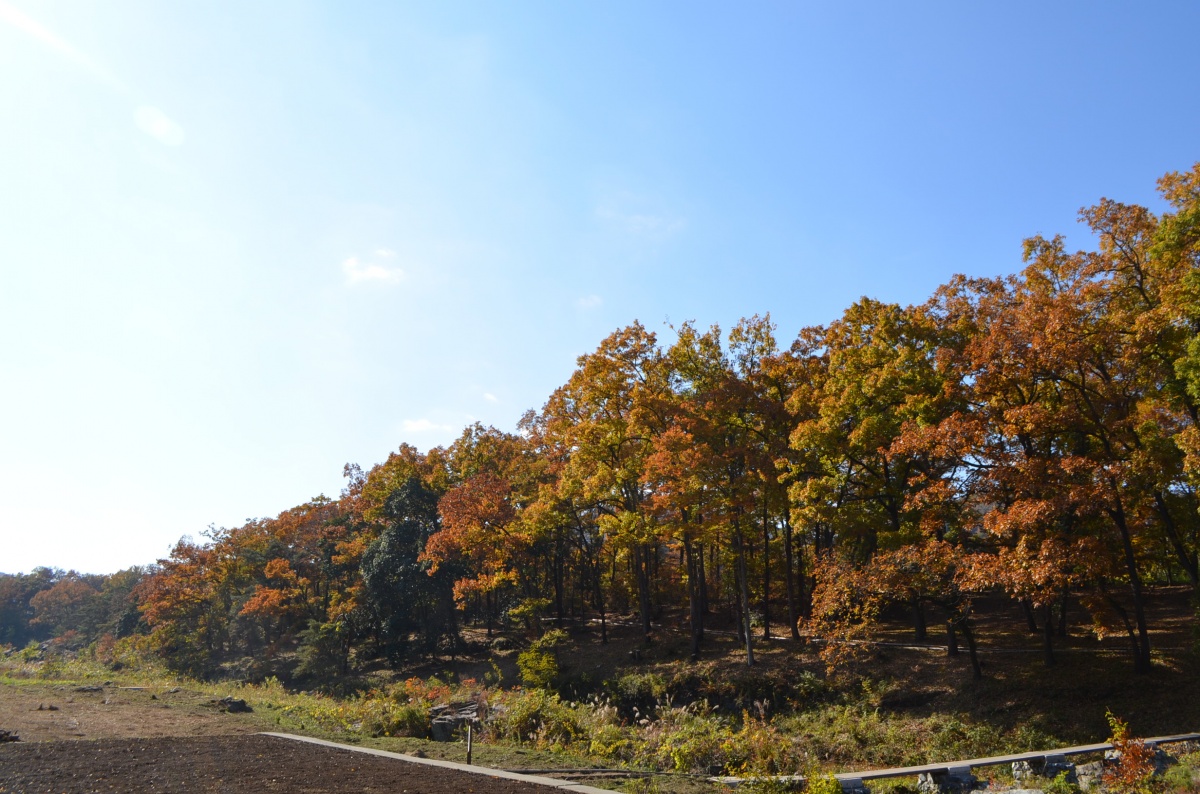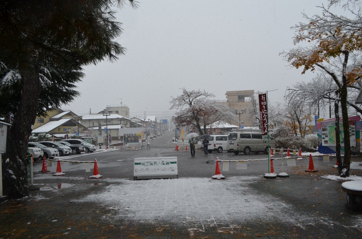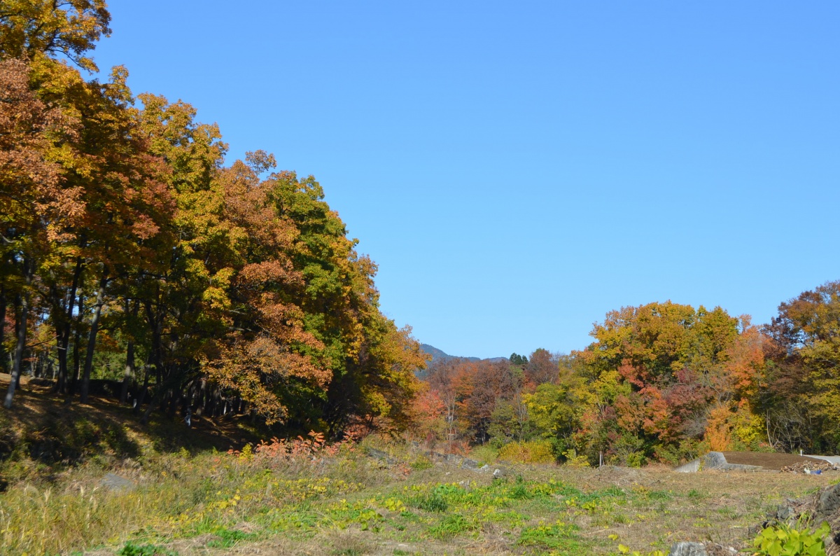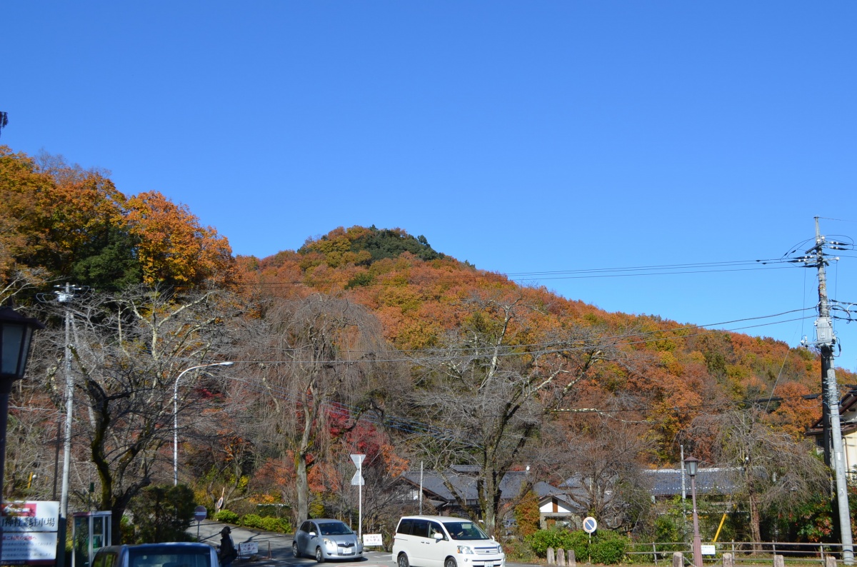 まだ山のほうは全体的に紅葉が見られます。今日はお天気がよいので、雪はほぼ融けています。