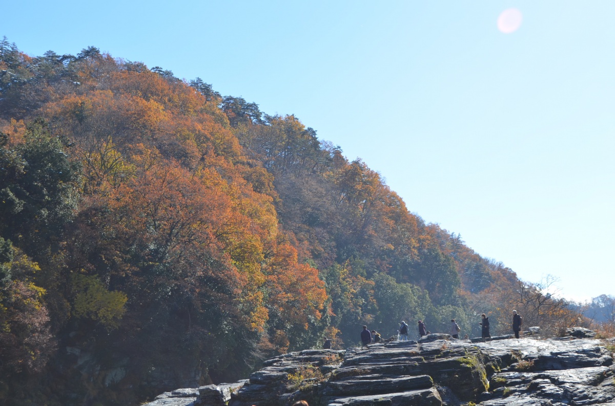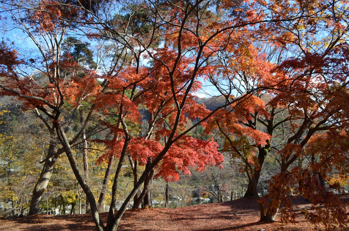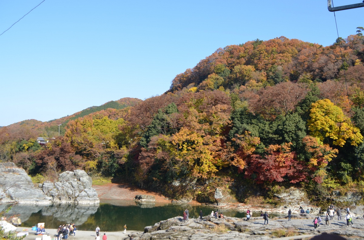 長瀞町内は見ごろが続いていますが、色付きが早かった樹は葉っぱが落ち始めていますので、お早めにお越しください。