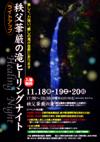 秩父華厳の滝ヒーリングナイト11月18・19・20日開催