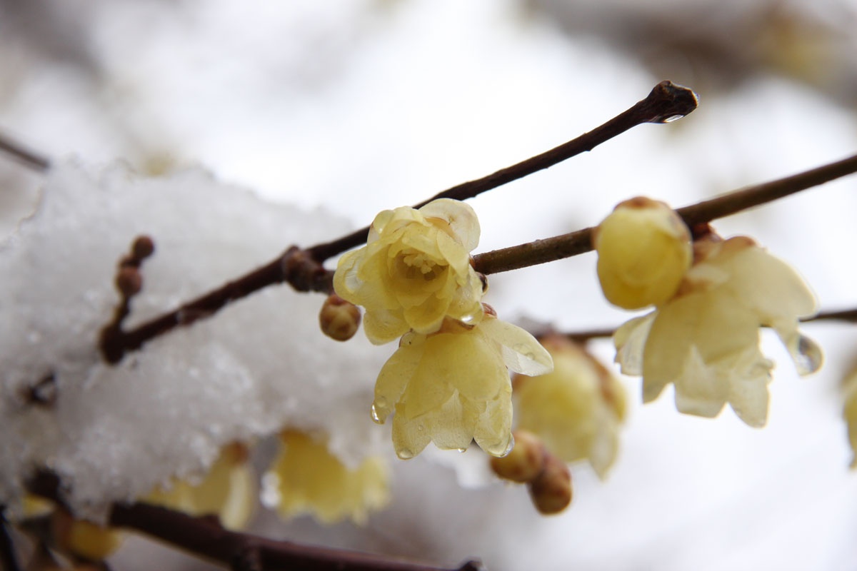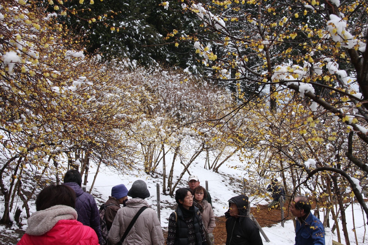 開花状況 宝登山ロウバイ園(雪かきが終了しており、鑑賞可能。所々ぬかるみ有り)