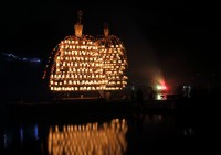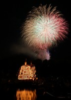 約1000基の灯篭流しと川面に光る万灯船はとても幻想的で、対岸から打ち上げられる約3500発の花火は頭上に大きく咲き、渓谷に響き渡る音とその迫力に、訪れた約8万人の観客からは大きな歓声と拍手があがりました。
