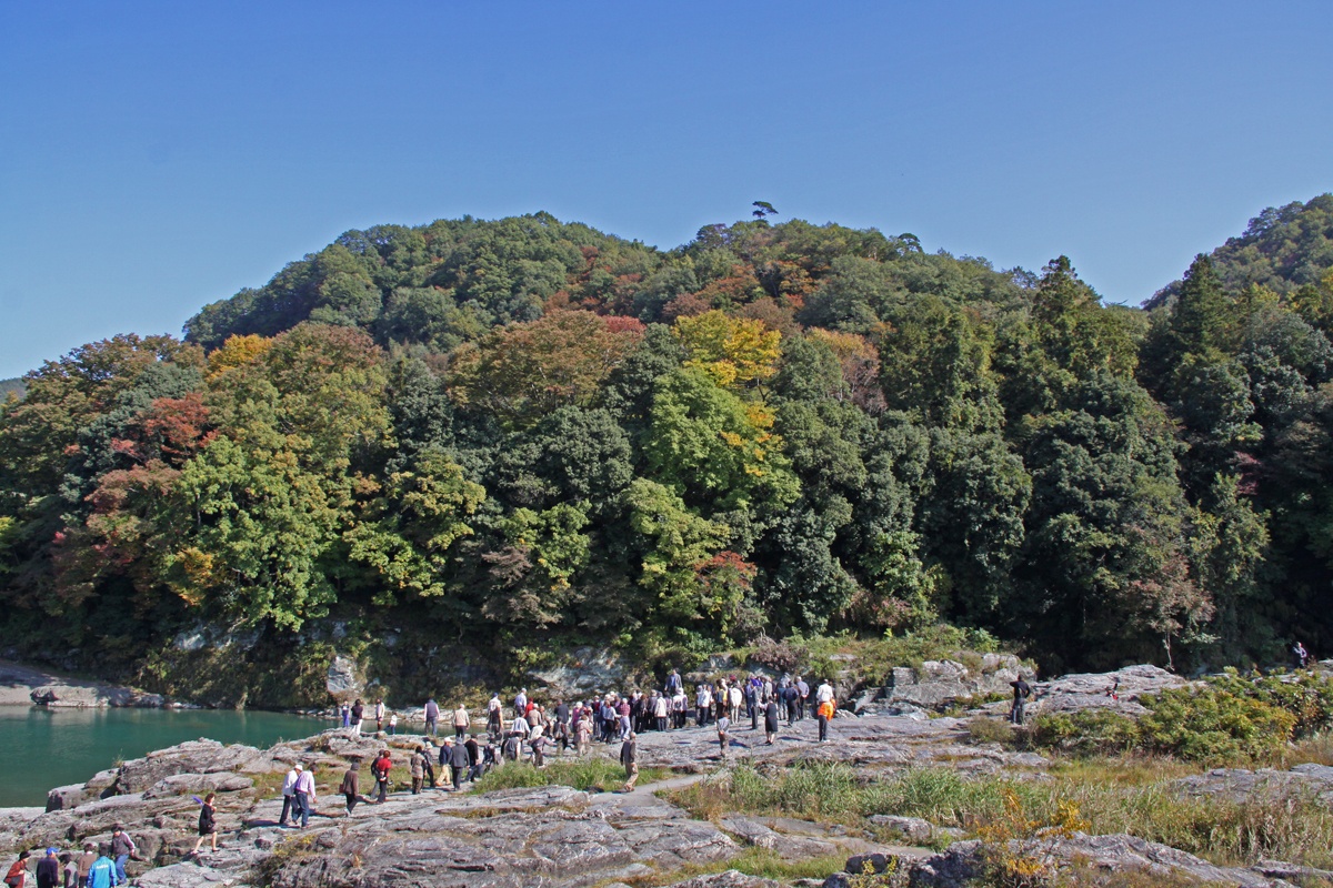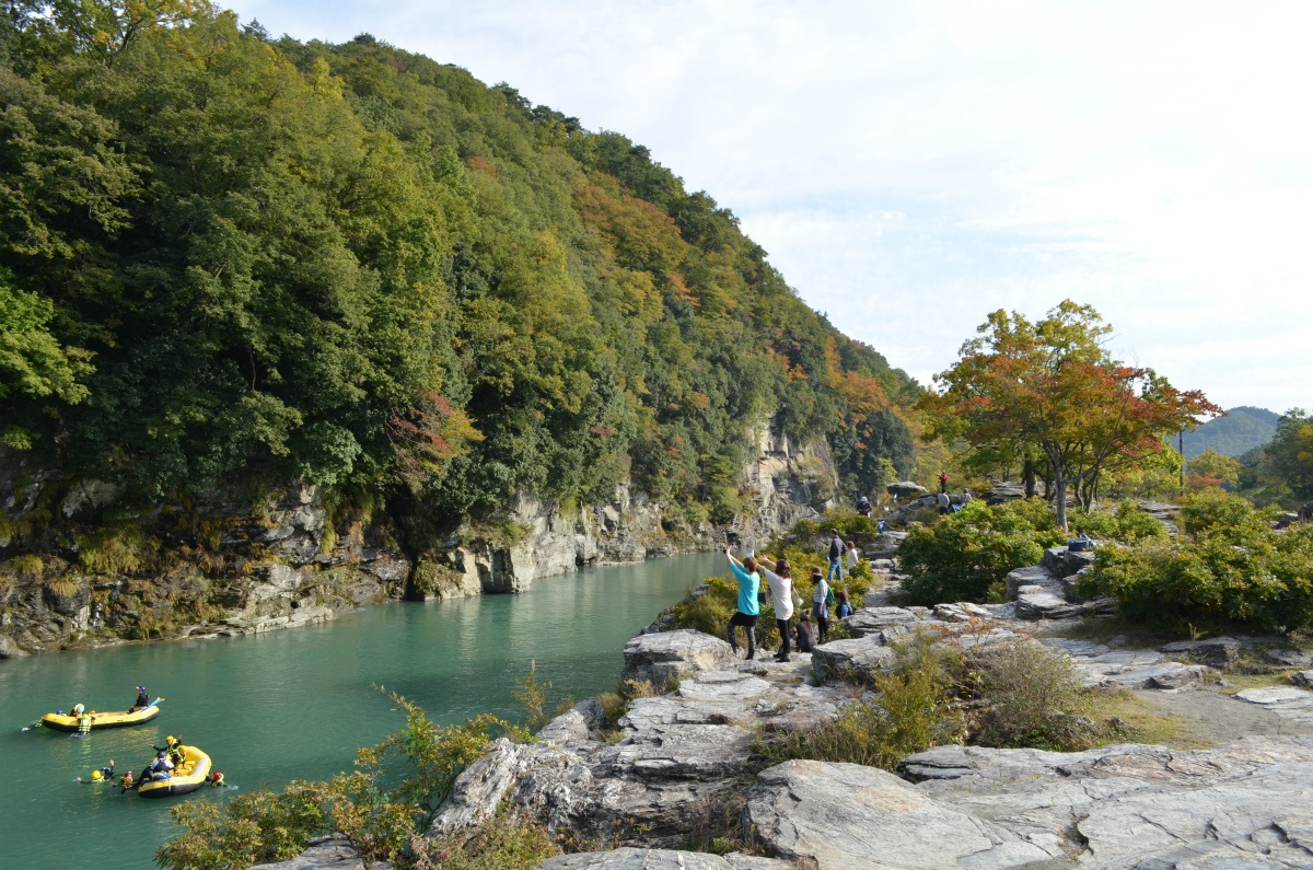 秋の深まりと共に、長瀞は赤や黄色の紅葉で彩られます。