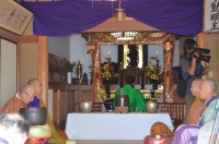 2014年8月23日 「七草寺霊場オープン法要」が行われました。 トピックス 長瀞町の秋の観光のひとつ「長瀞七草寺めぐり」。 シーズン到来前に「七草寺霊場オープン法要」が、8月23日真性寺にて行われました。 この法要は毎年二十四節気の処暑に行われており、七草寺の住職が集まり、各お寺に植えられている七草が献花され、「七草寺めぐり」に訪れる人々の安全を祈願しました。