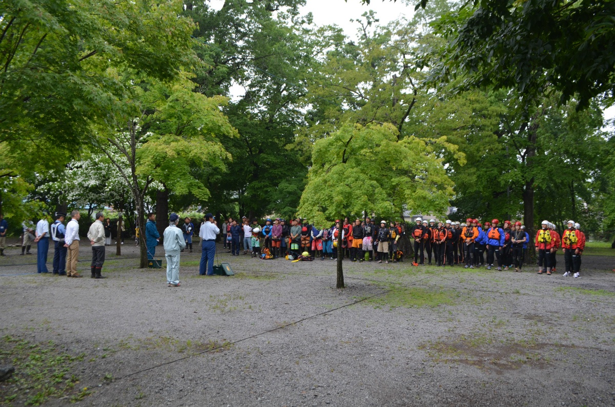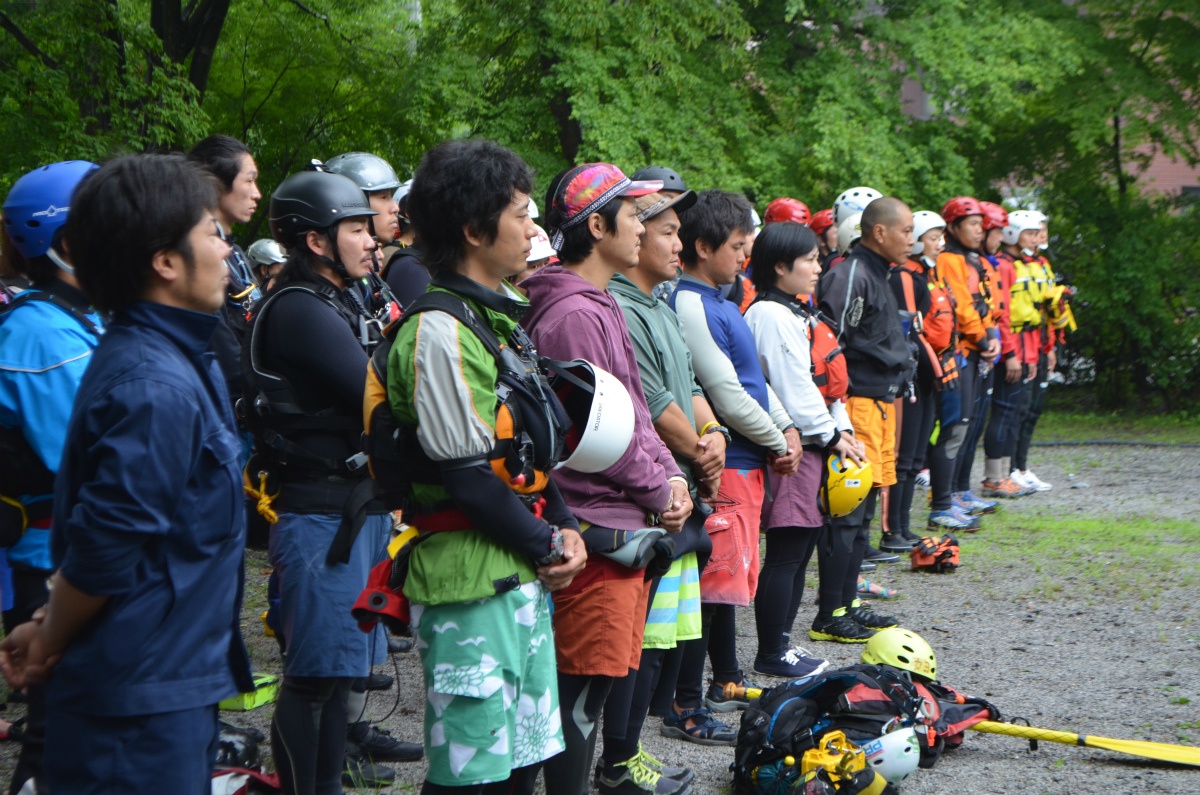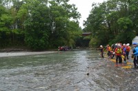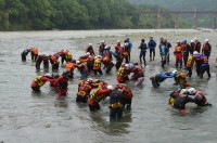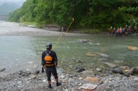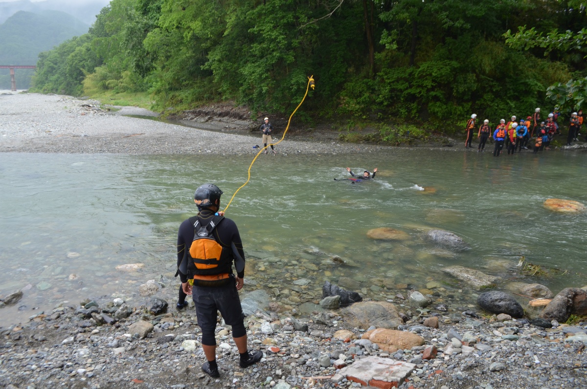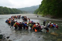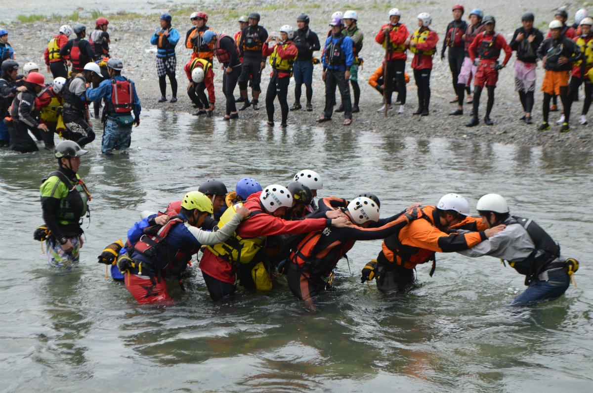 その後、川が増水してしまった時に、集団で川を移動するレスキュー法も指導され、