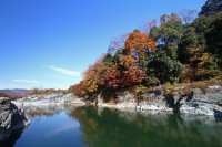 秋の深まりと共に、長瀞は赤や黄色の紅葉で彩られます。