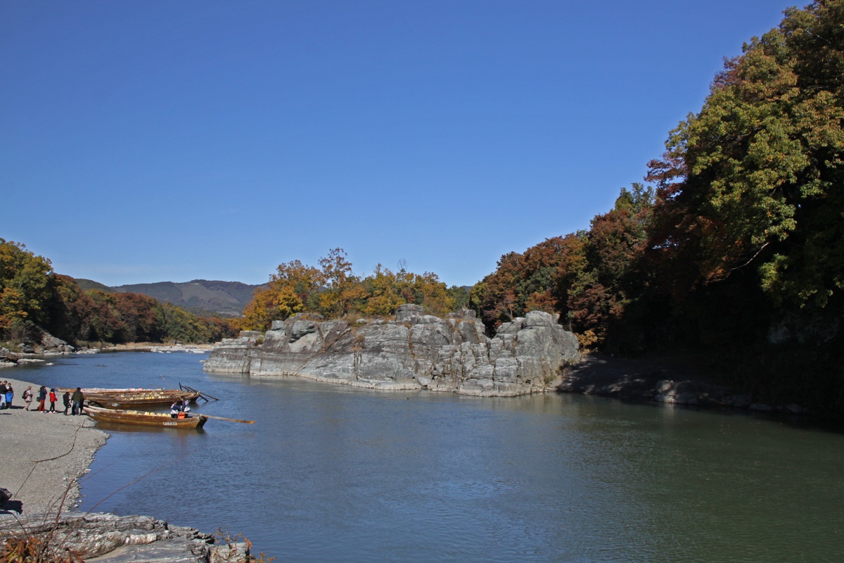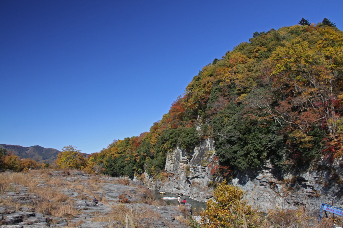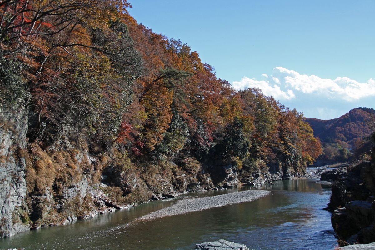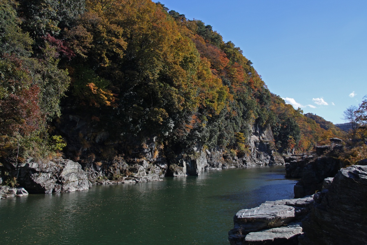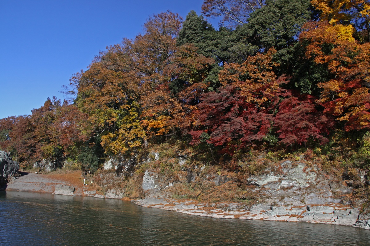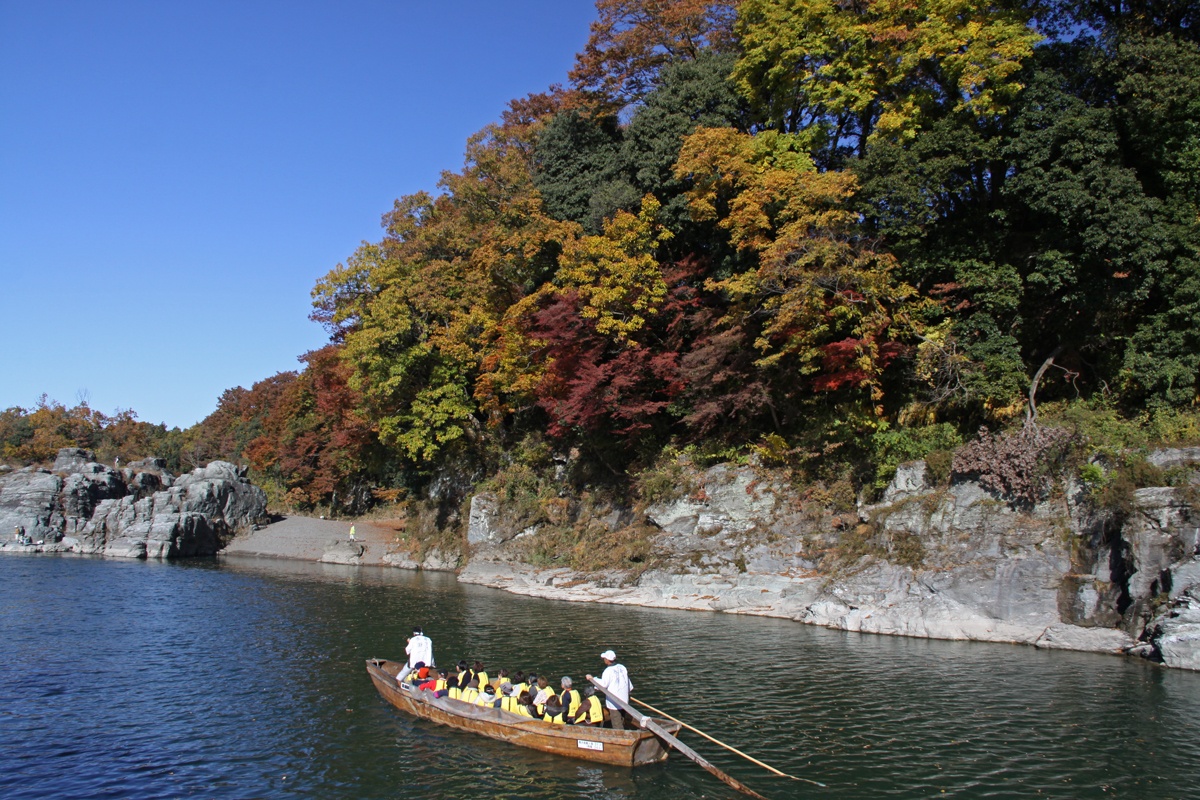 秋の深まりと共に、長瀞は赤や黄色の紅葉で彩られます。