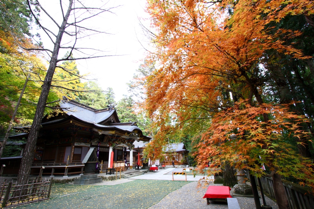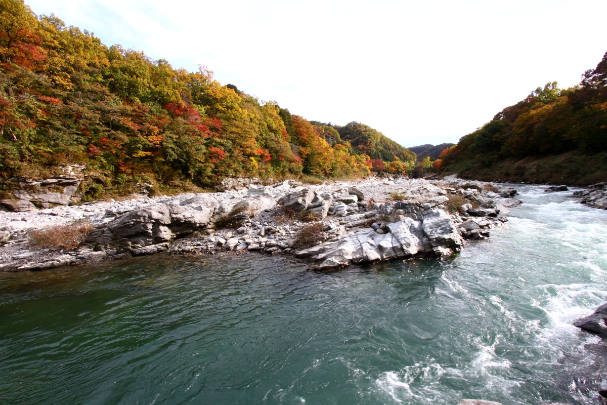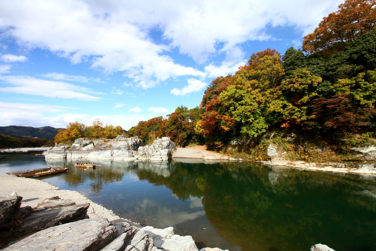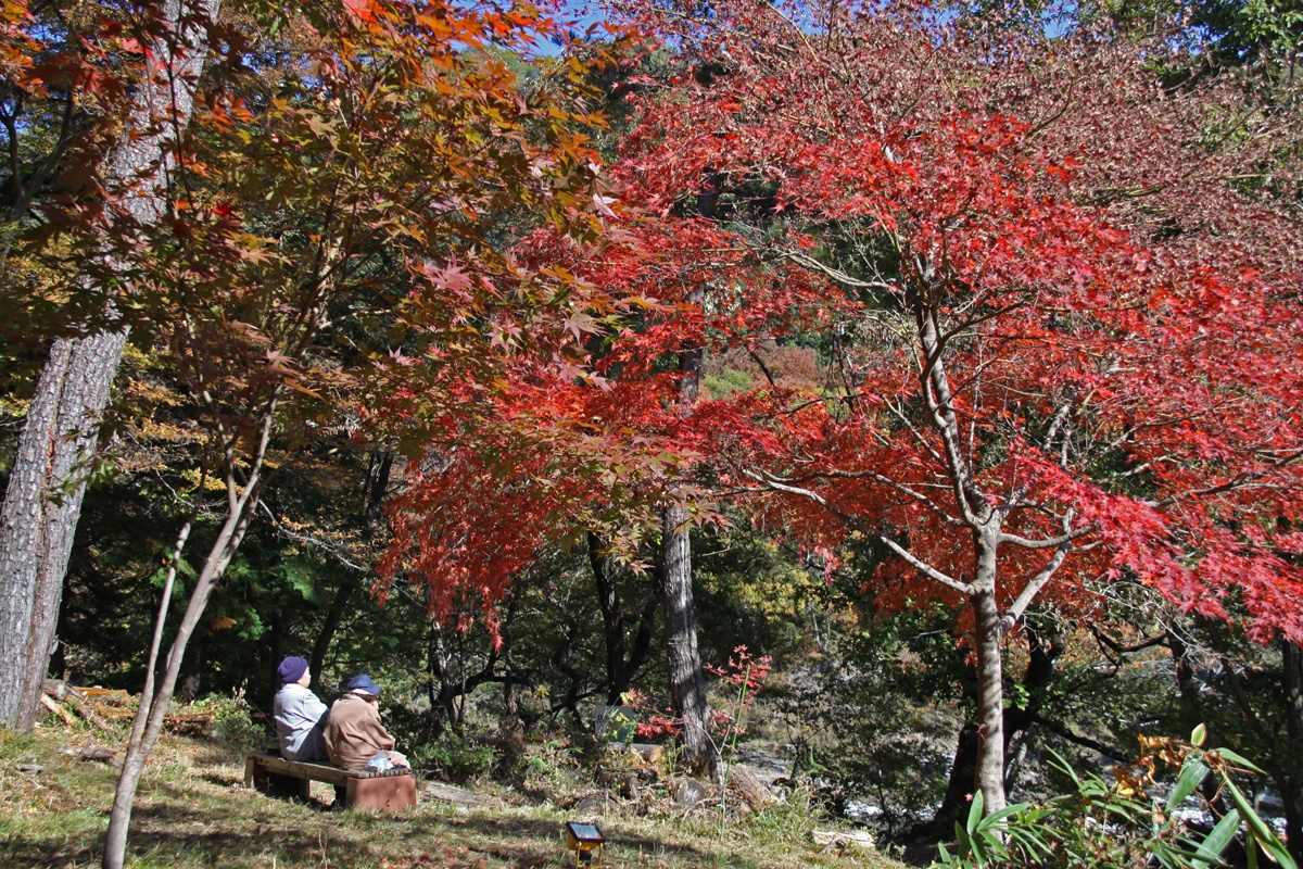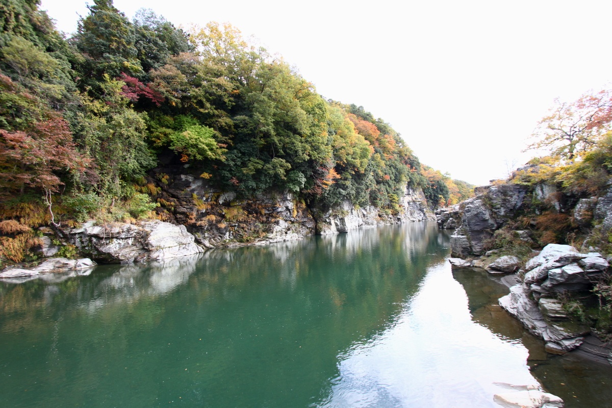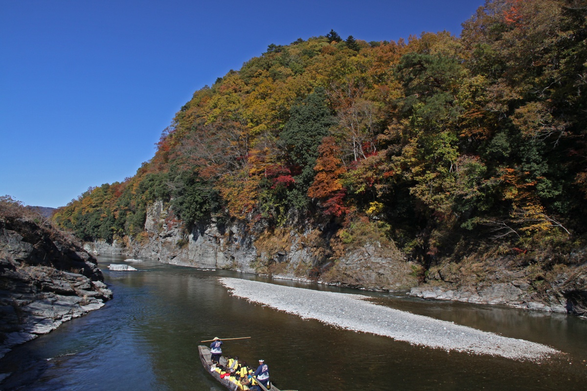 秋の深まりと共に、長瀞は赤や黄色の紅葉で彩られます。