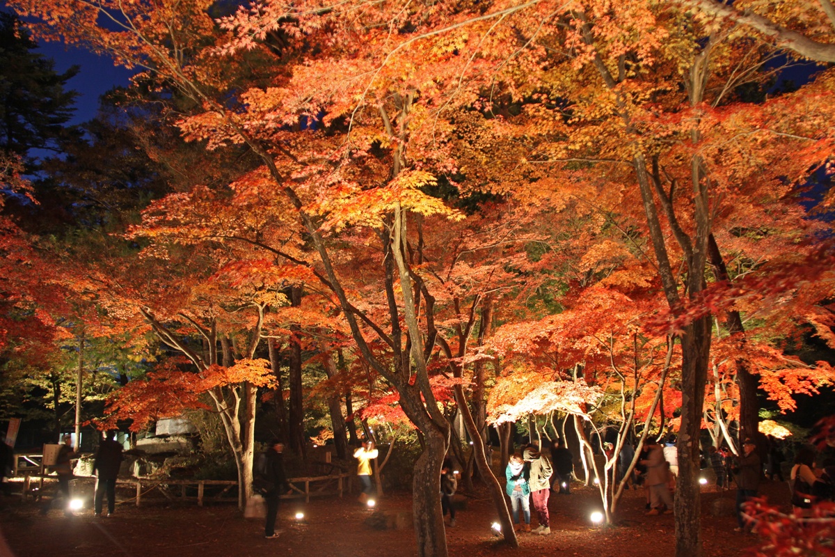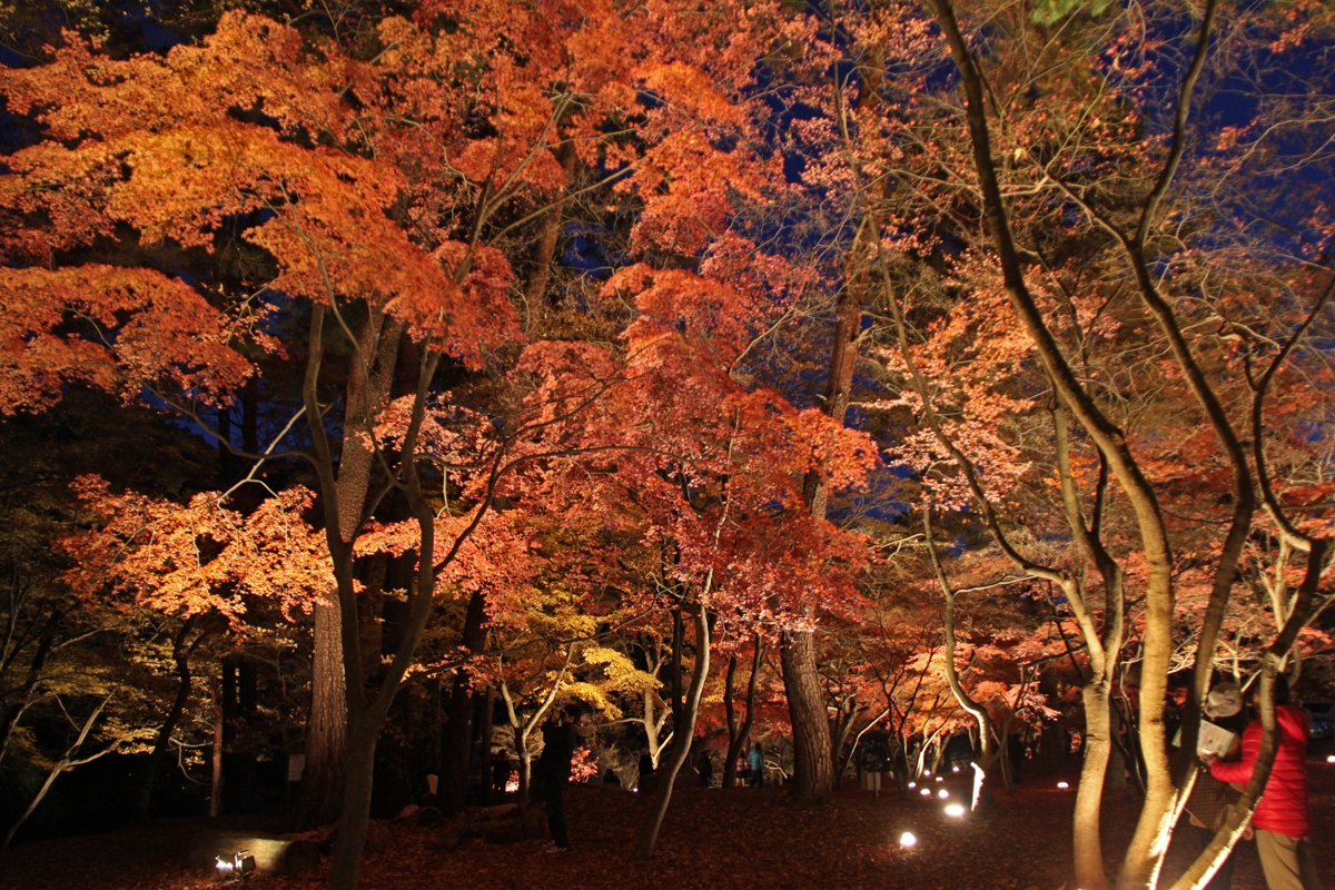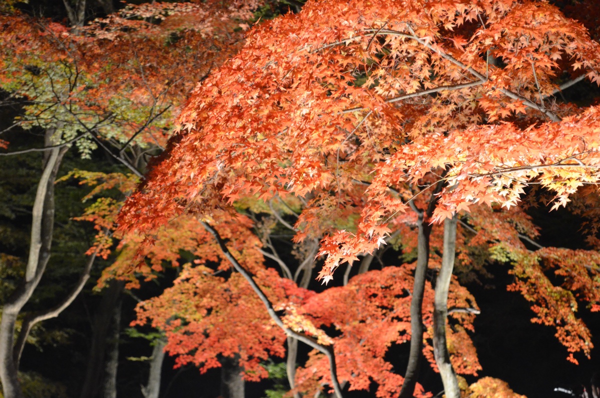 見頃となったもみじは昼とはまた違う魅力で、闇夜に浮かび上がります。