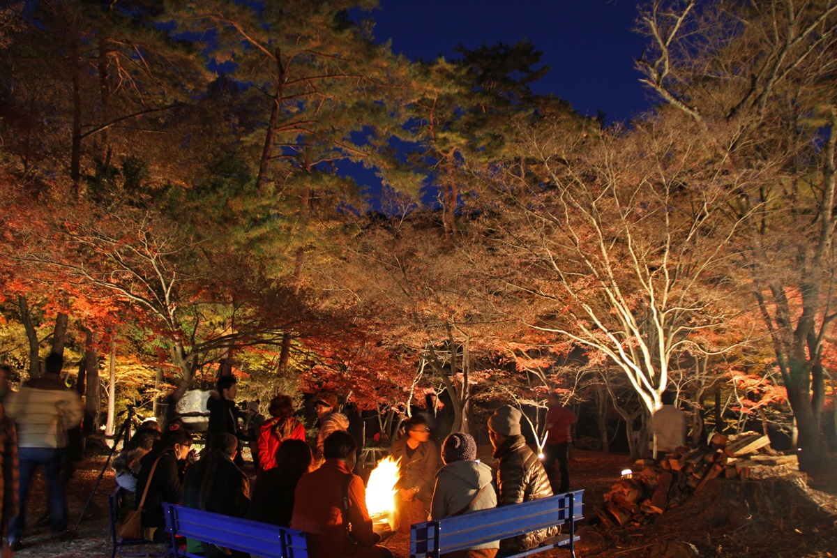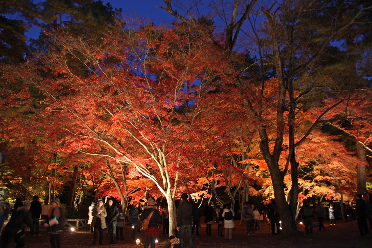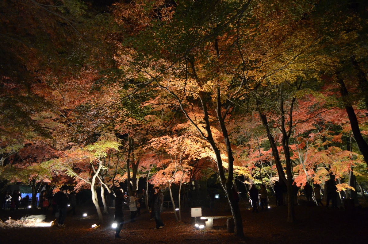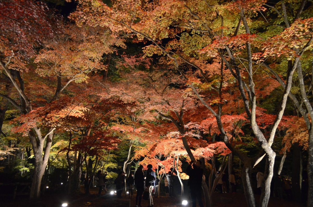 見頃となったもみじは昼とはまた違う魅力で、闇夜に浮かび上がります。
