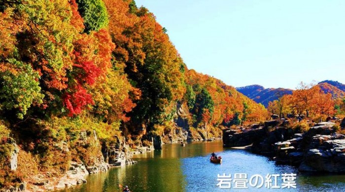 長瀞の人気の和舟での川下り、川からの紅葉をお楽しみください。(舟会社は3社あります)
