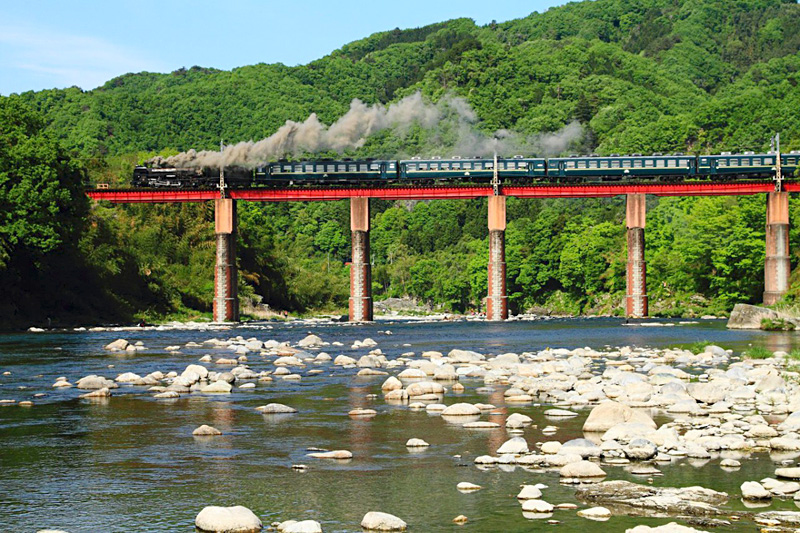 1944년에 만들어진, 지금은 일본에서도 보기 드문 증기기관차 「팔레오익스프레스」. 전철과는 또 다른 여행의 풍경을 맛볼 수 있어 특별한 추억이 될 것입니다.