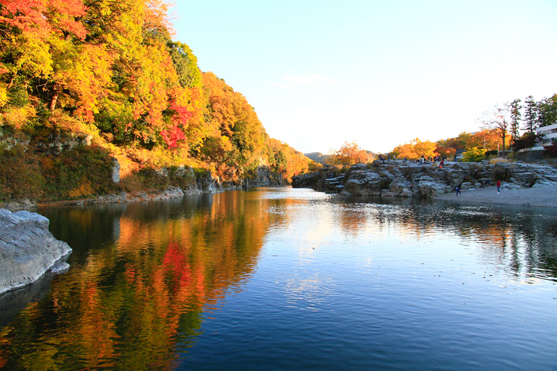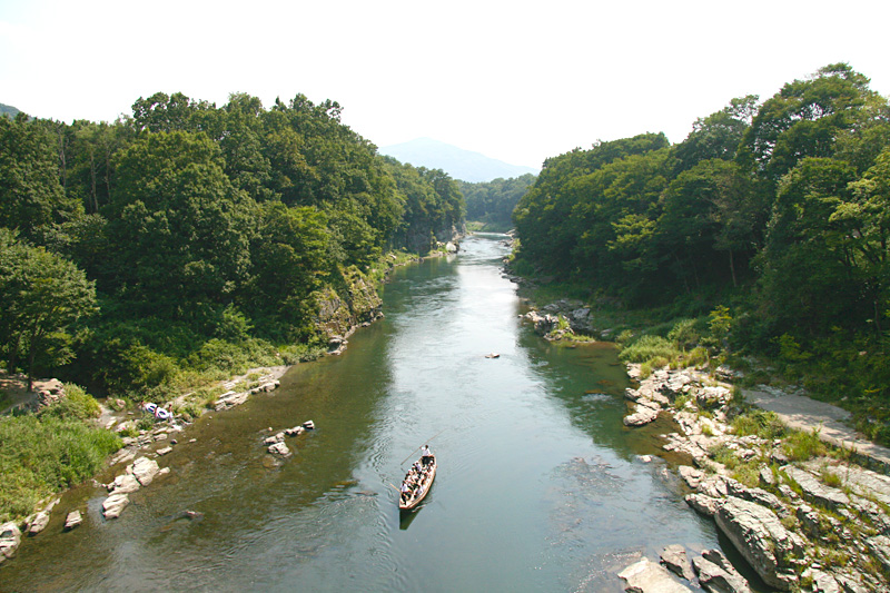 나가토로 계곡은 총 길이가 약6km에 달하며 명승•천연 기념물로 지정되어 있습니다. 그 중에서 「나가토로 이와다타미(암석단구)」는 아라 강을 따라 폭 80m, 길이 500m에 걸쳐 암석이 노출되어 있는데, 일면에 다다미를 깔아 놓은 것처럼 보여서 「이와다타미」라고 불리고 있습니다. 나가토로 계곡에서는 지각변동이나 강의 침식 작용으로 생긴 자연의 조형미를 곳곳에서 만날 수 있습니다.