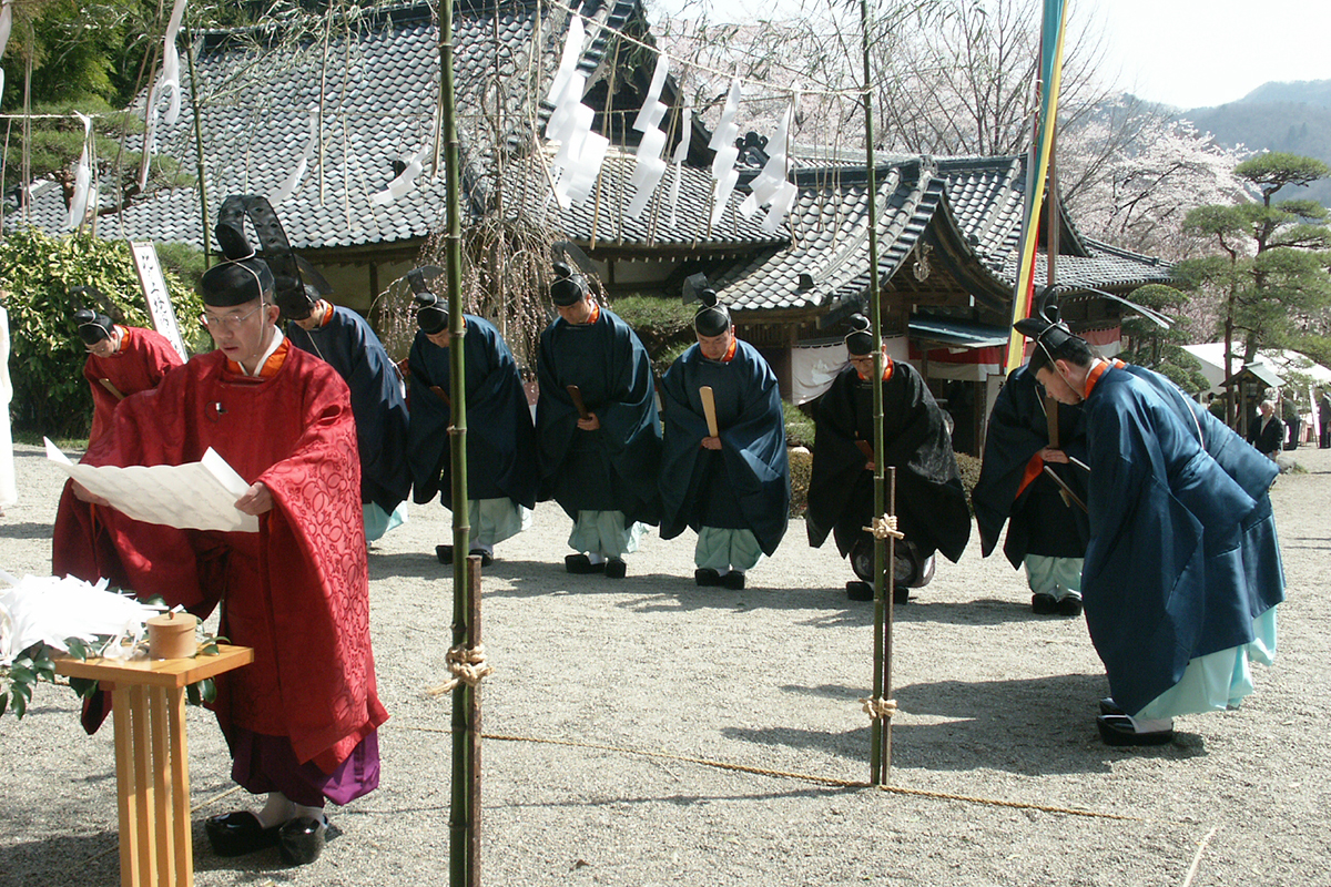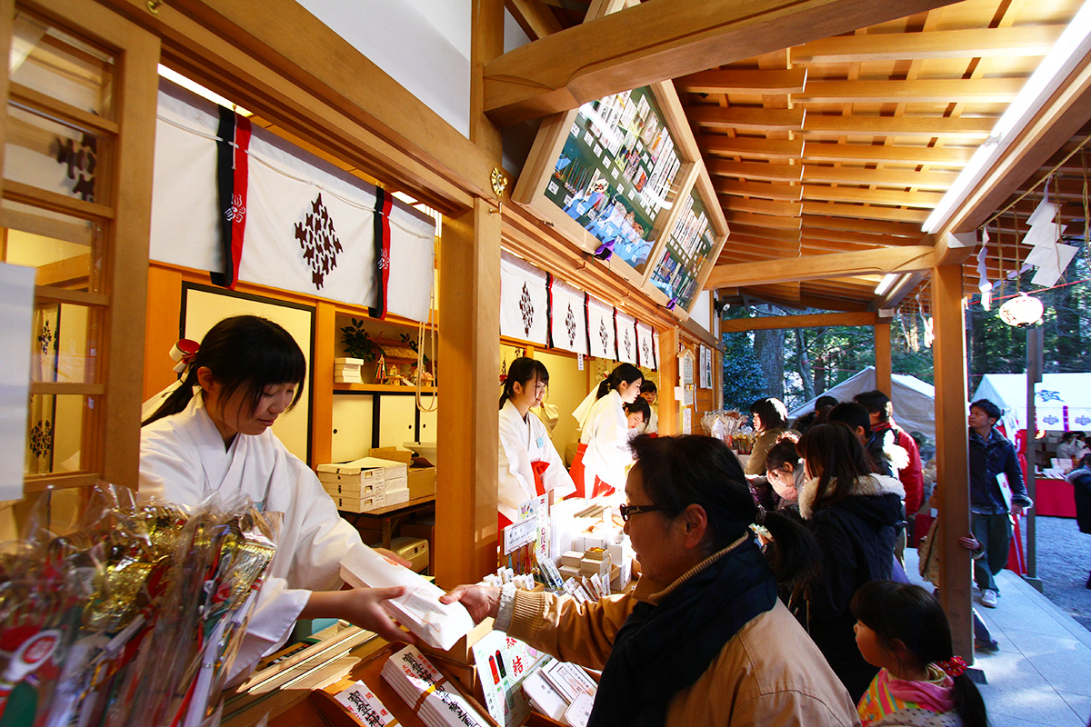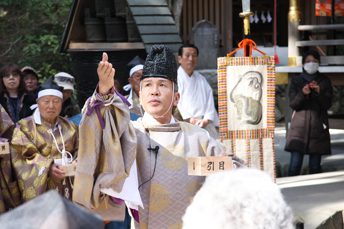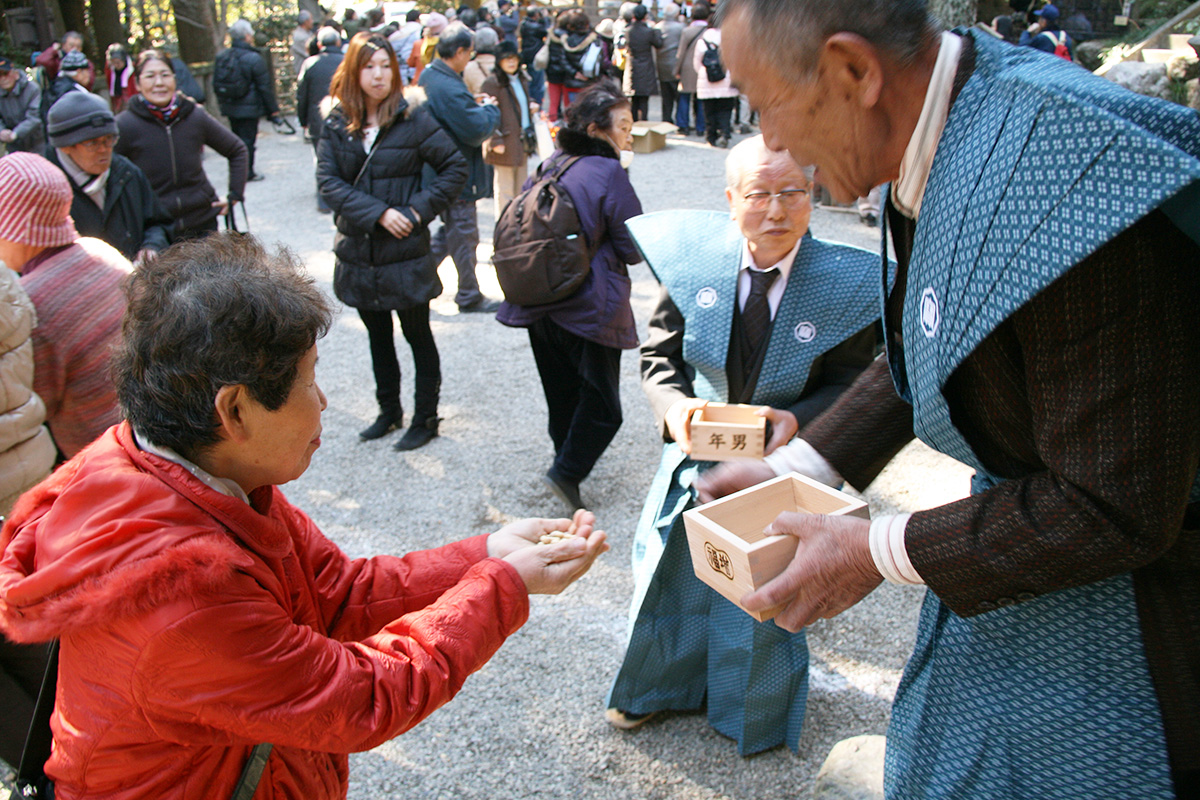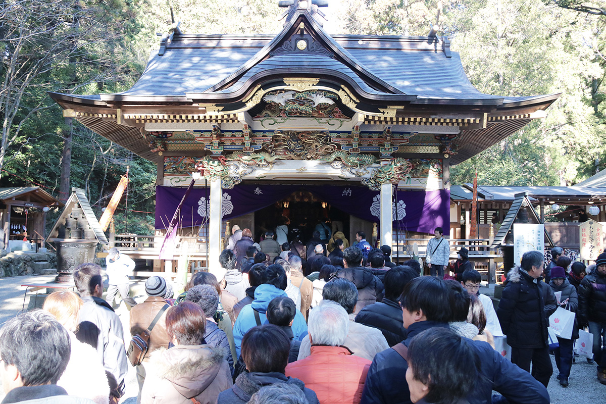 元日の早朝に行われる祭りで、新年のあいさつとともに新しい年の始まりを祝い、 その歳の繁栄や五穀の豊穣を祈願する。 寶登山神社では、午前零時を期して尺玉の花火が打ち上げられ、 祭典が執行される。 かがり火の中、善男善女の初詣の群れが 切れ目なく夜を徹して続く。 寶登山神社は「宝の山に登る」という名称にちなむ縁起のよさから、 毎年近郷近在から多くの初詣客が訪れている。
