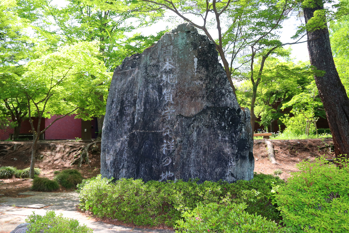 埼玉県立自然の博物館前には『日本地質学発祥の地』と刻まれた大きな石碑があります。