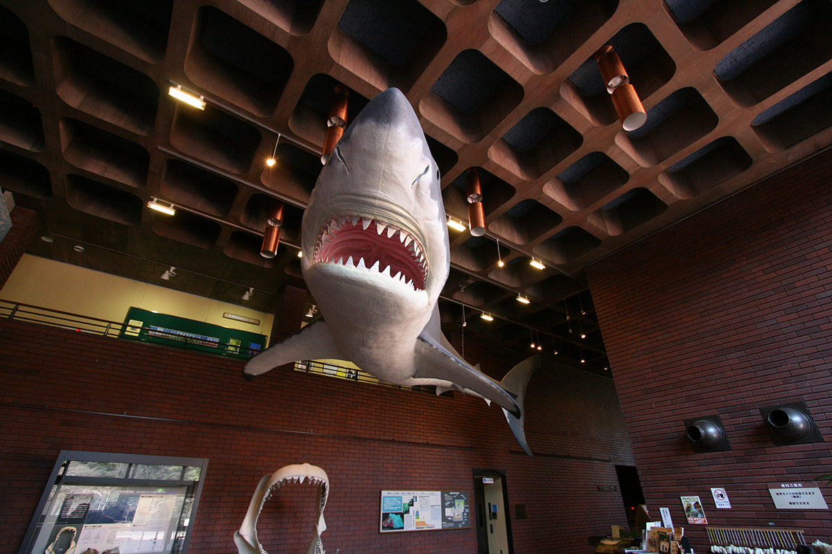 1500万年前、秩父盆地が海だった頃に生息した巨大ザメ「カルカロドン メガロドン」の復元模型や海獣「パレオパラドキシア」の骨格標本が展示されています。