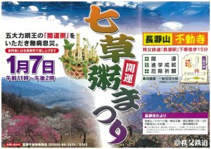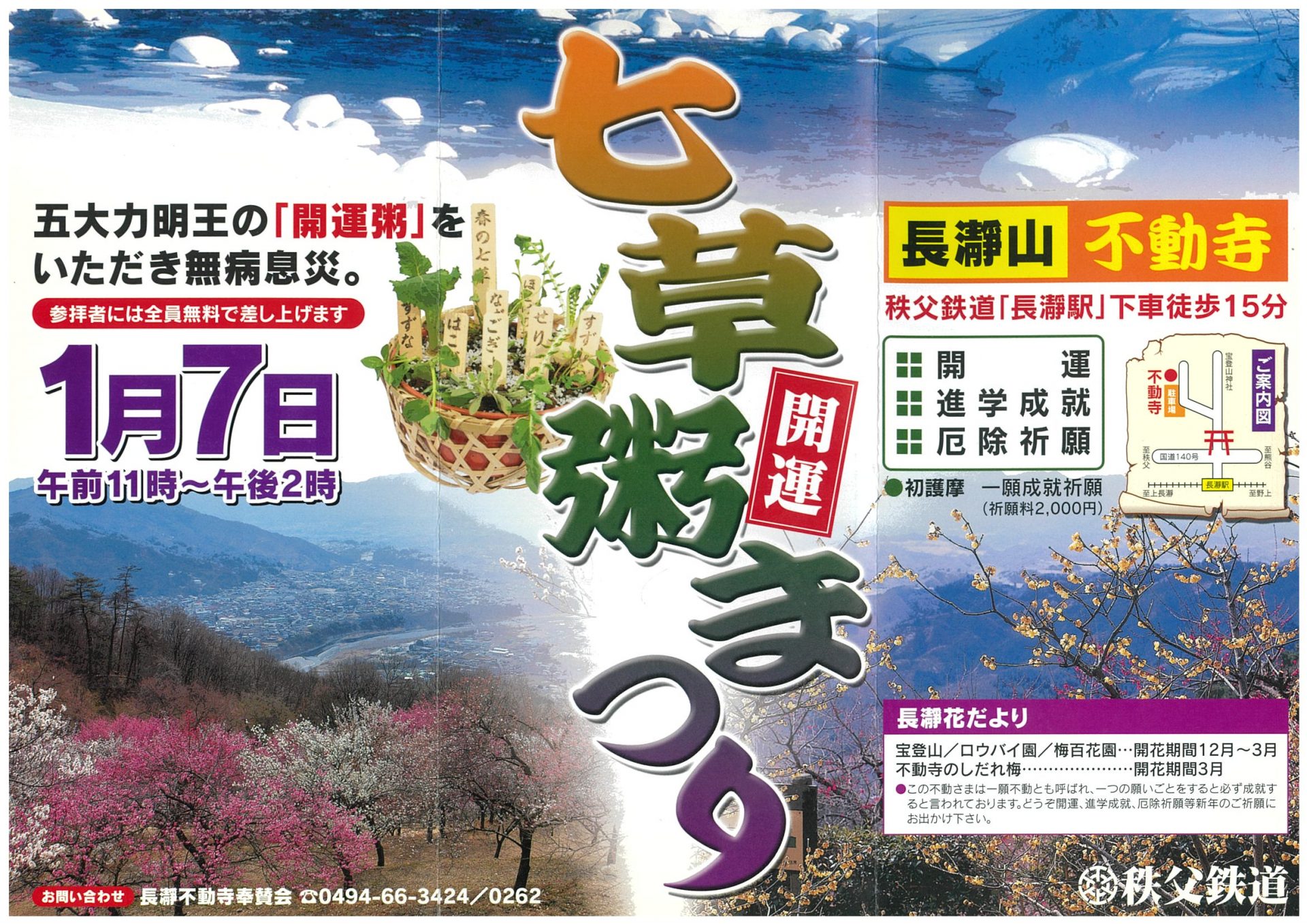 来る1月7日(火)、不動寺にて毎年恒例の「七草粥まつり」が開催されます。
