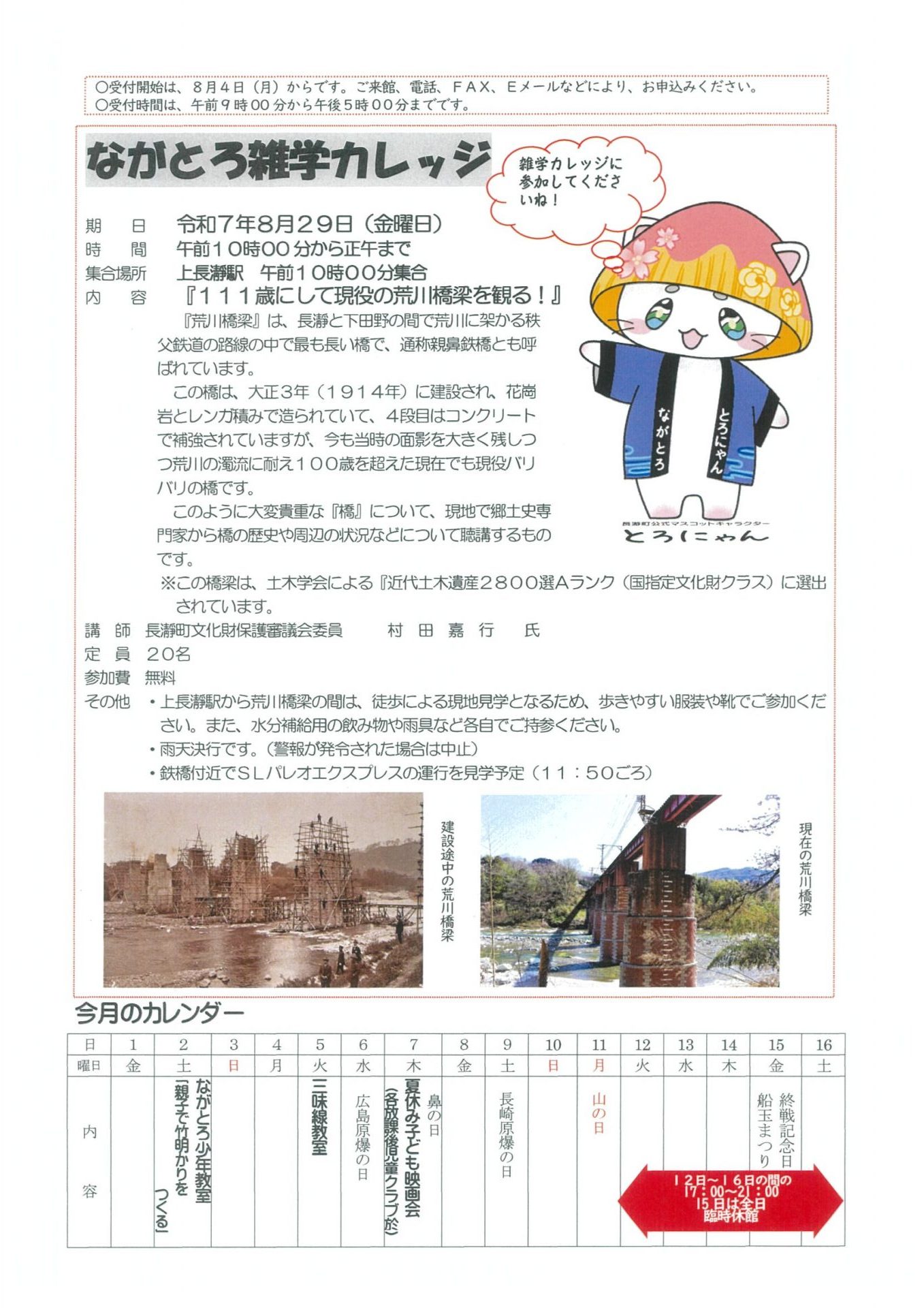 貴重なこの橋について、深く学べる機会が8月29日(金)に行われます。