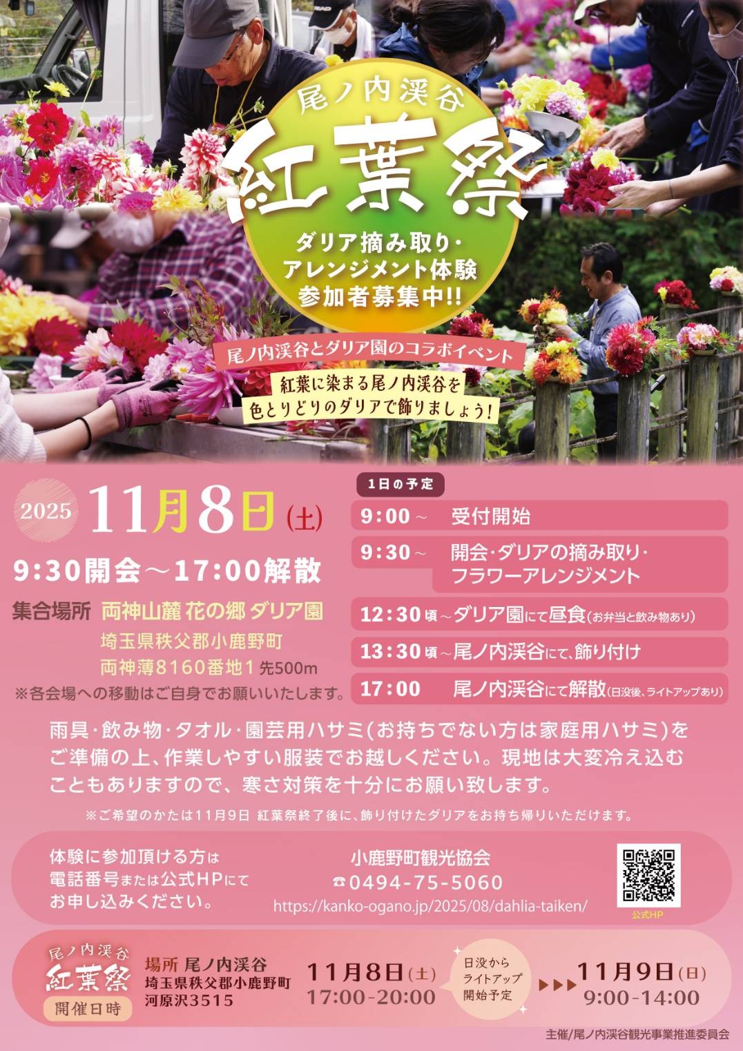 🍁【尾ノ内紅葉祭】ダリア摘み取り・アレンジメント体験(参加者募集中)🍁 | 小鹿野町観光協会