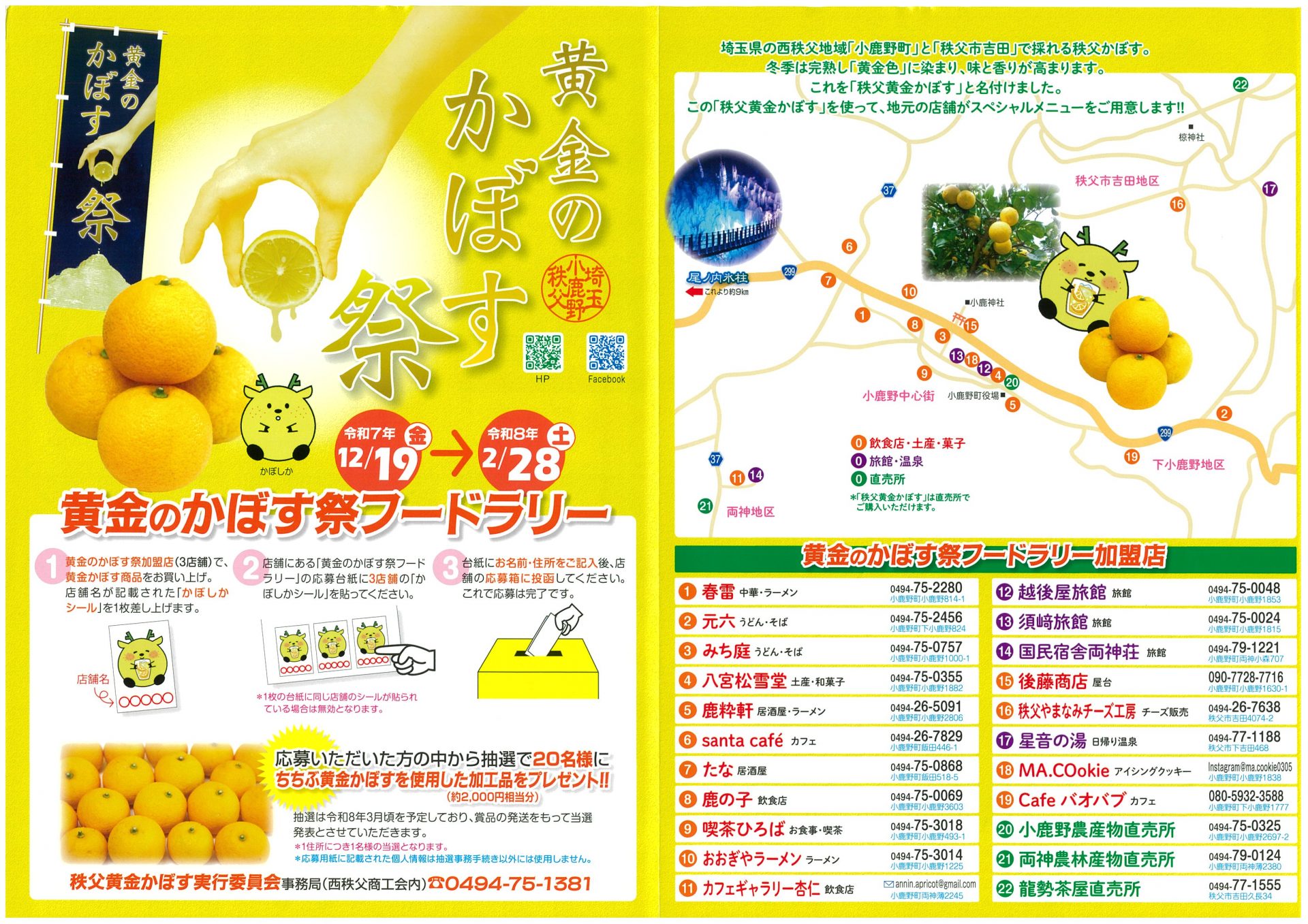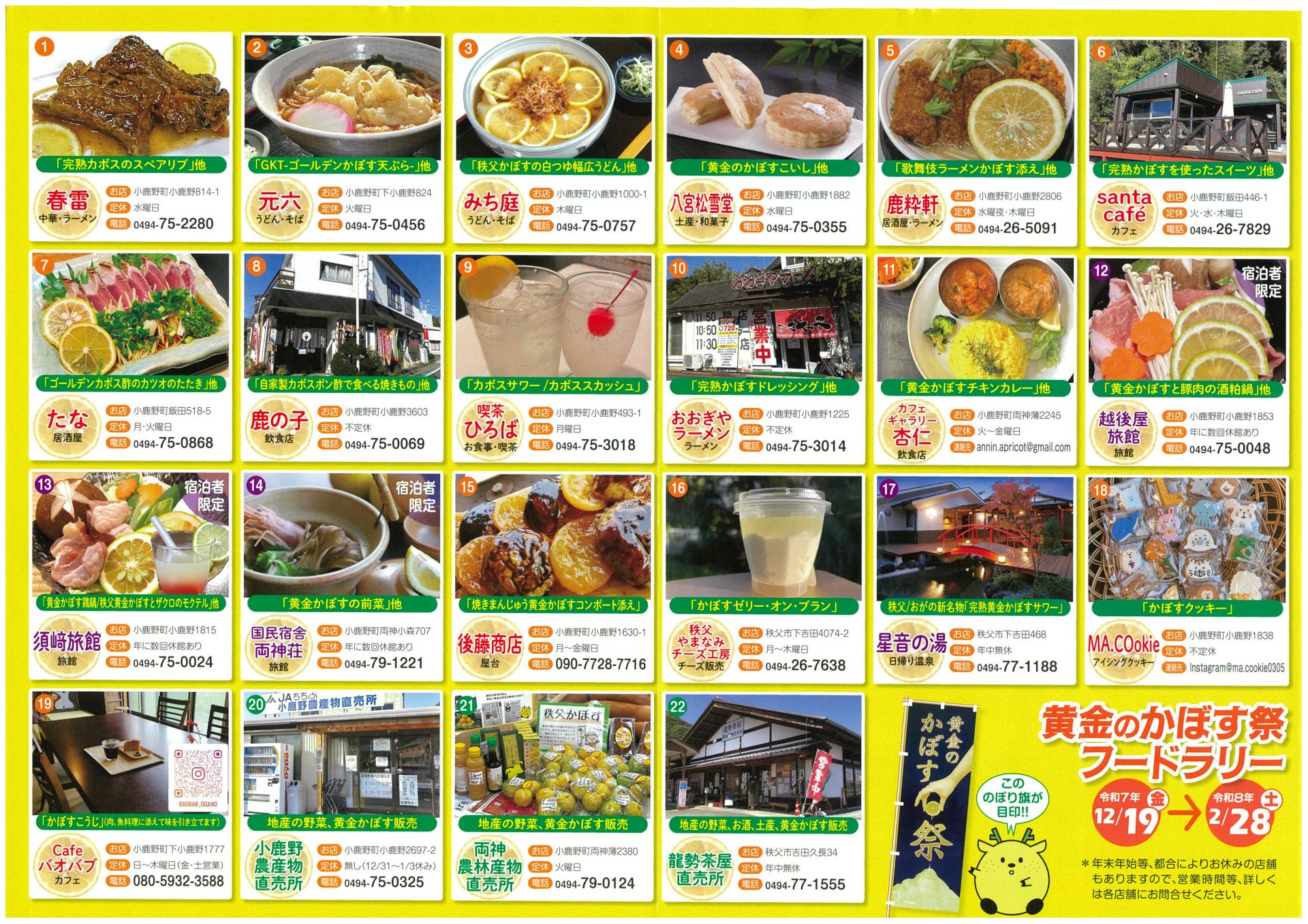 「秩父黄金かぼす」と名付けられたこのかぼすを使って、地元の店舗がスペシャルメニューをご用意しておりますので、